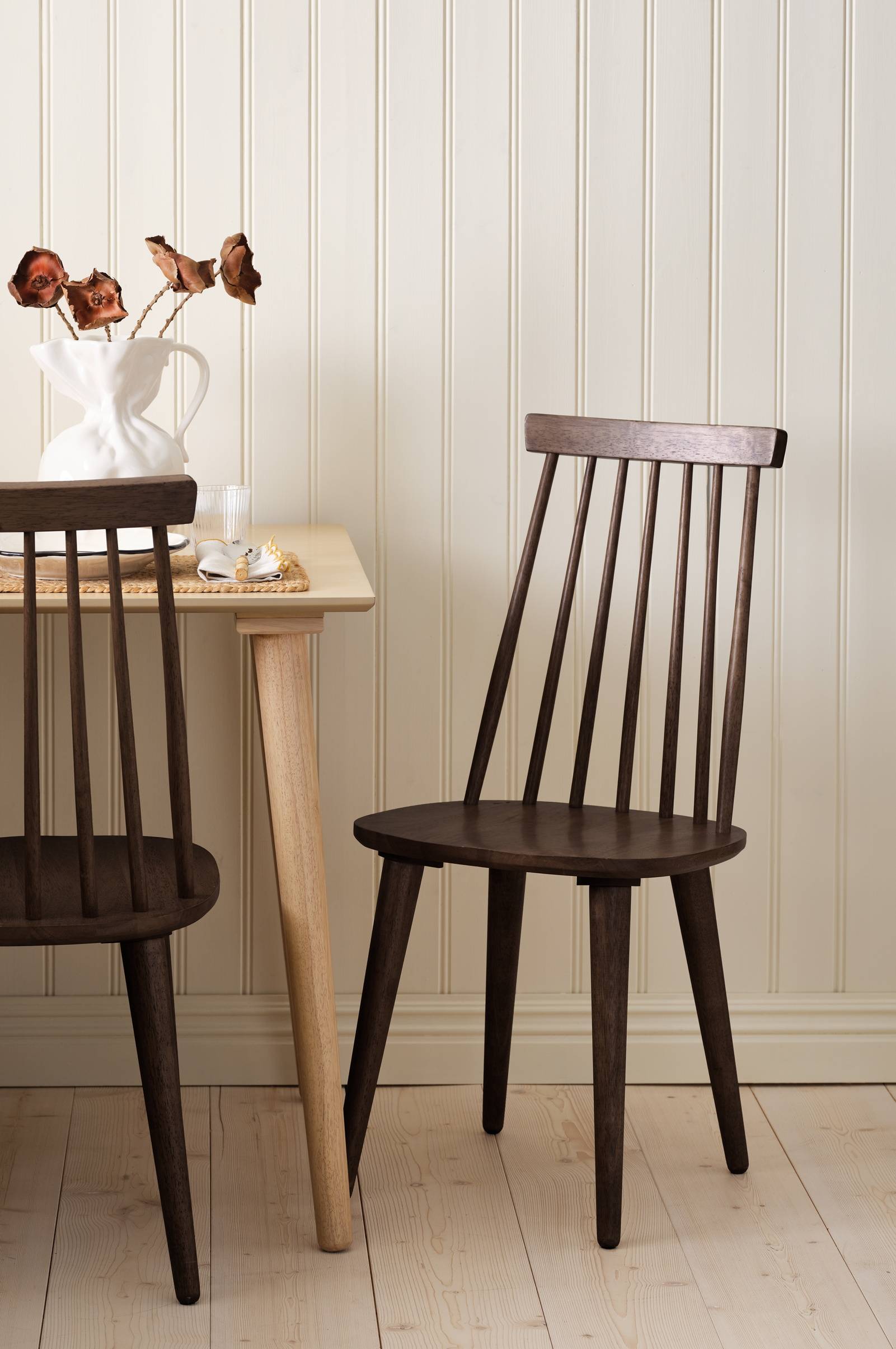 • Pinnstol i massivt gummiträ