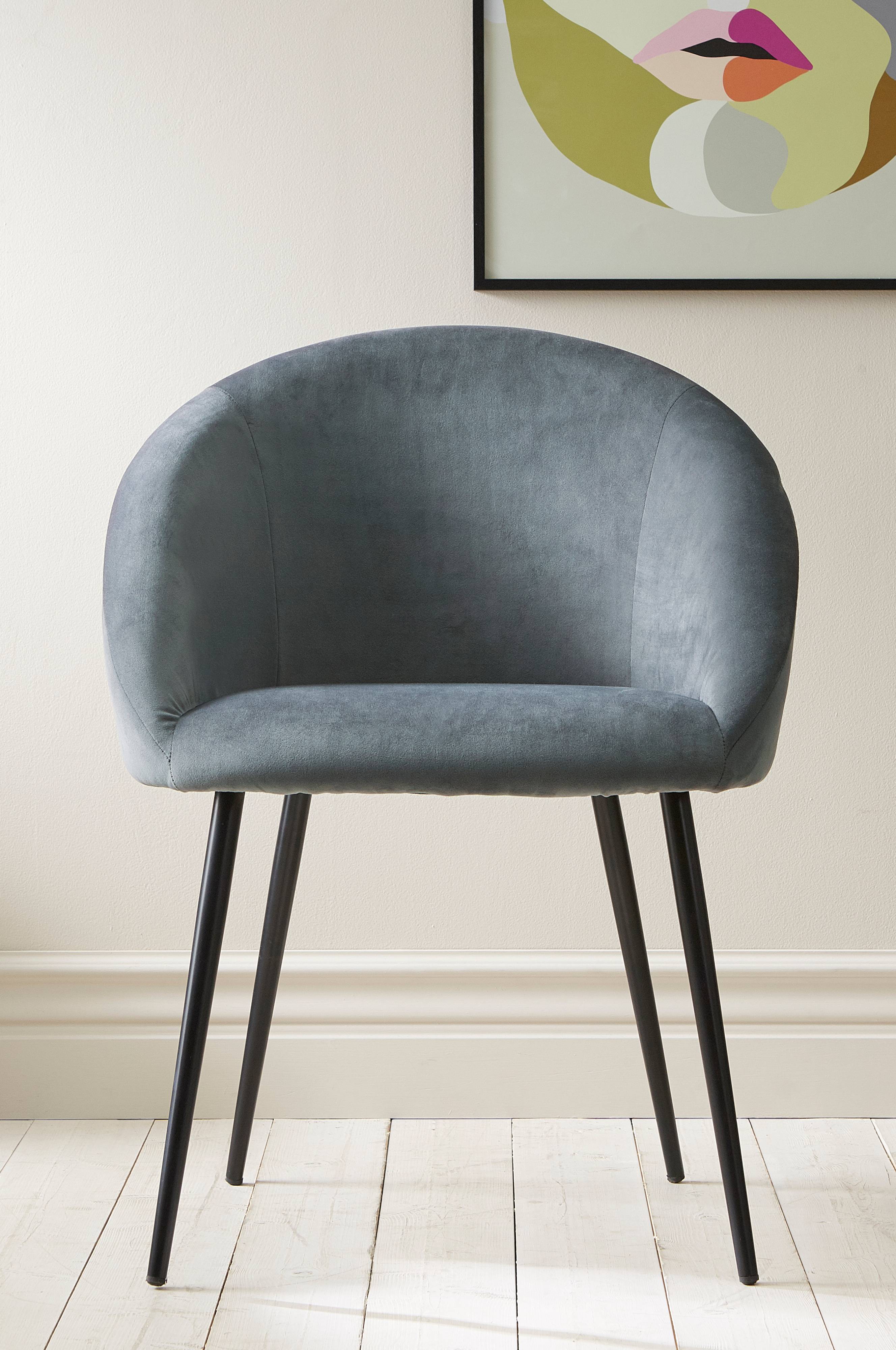 Stol med av trä med sammetsklädsel. Ben av metall. Polyeterfyllning i sitsen.
