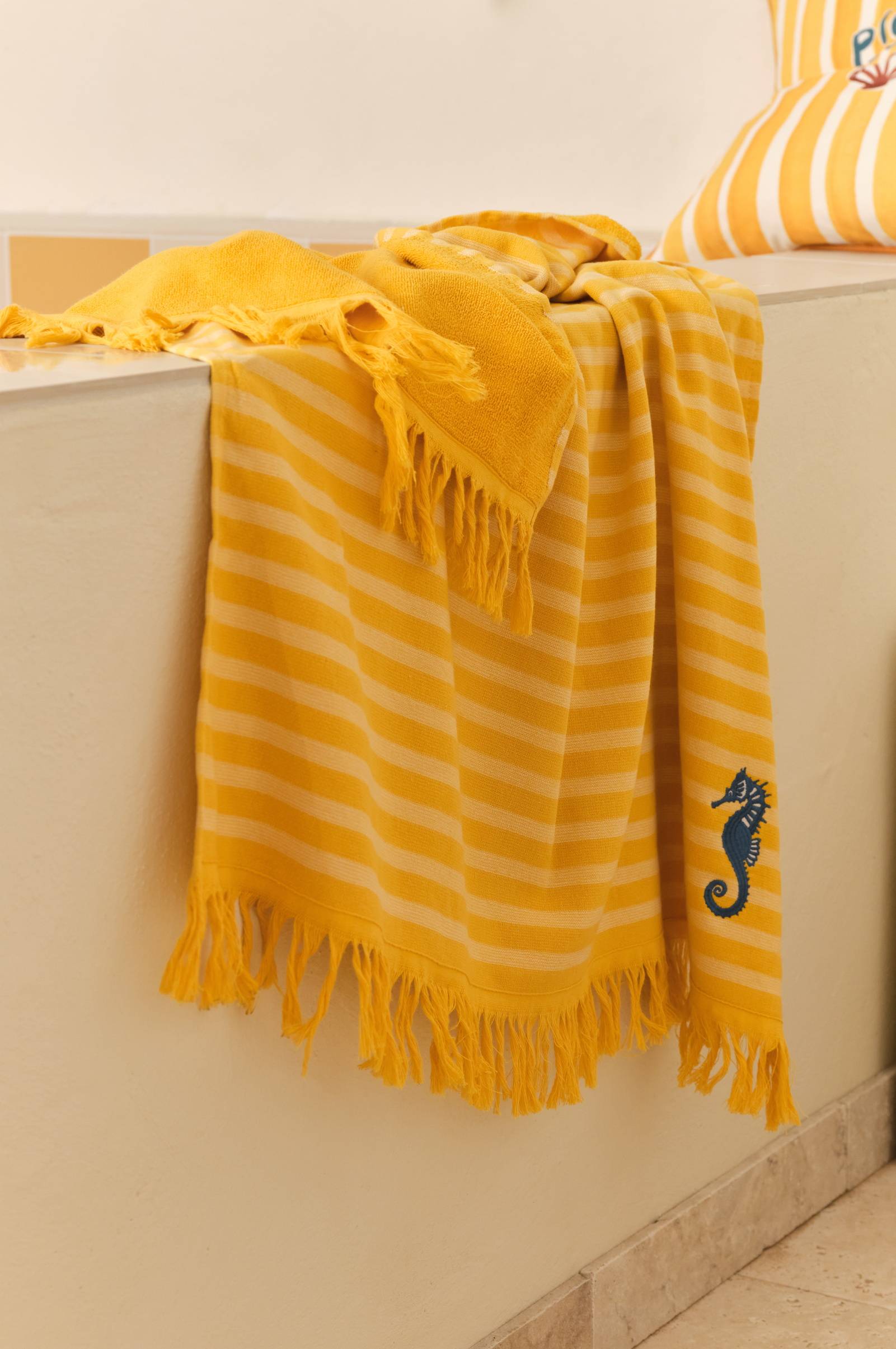 • Hamamhandduk i bomull med slätvävd framsida