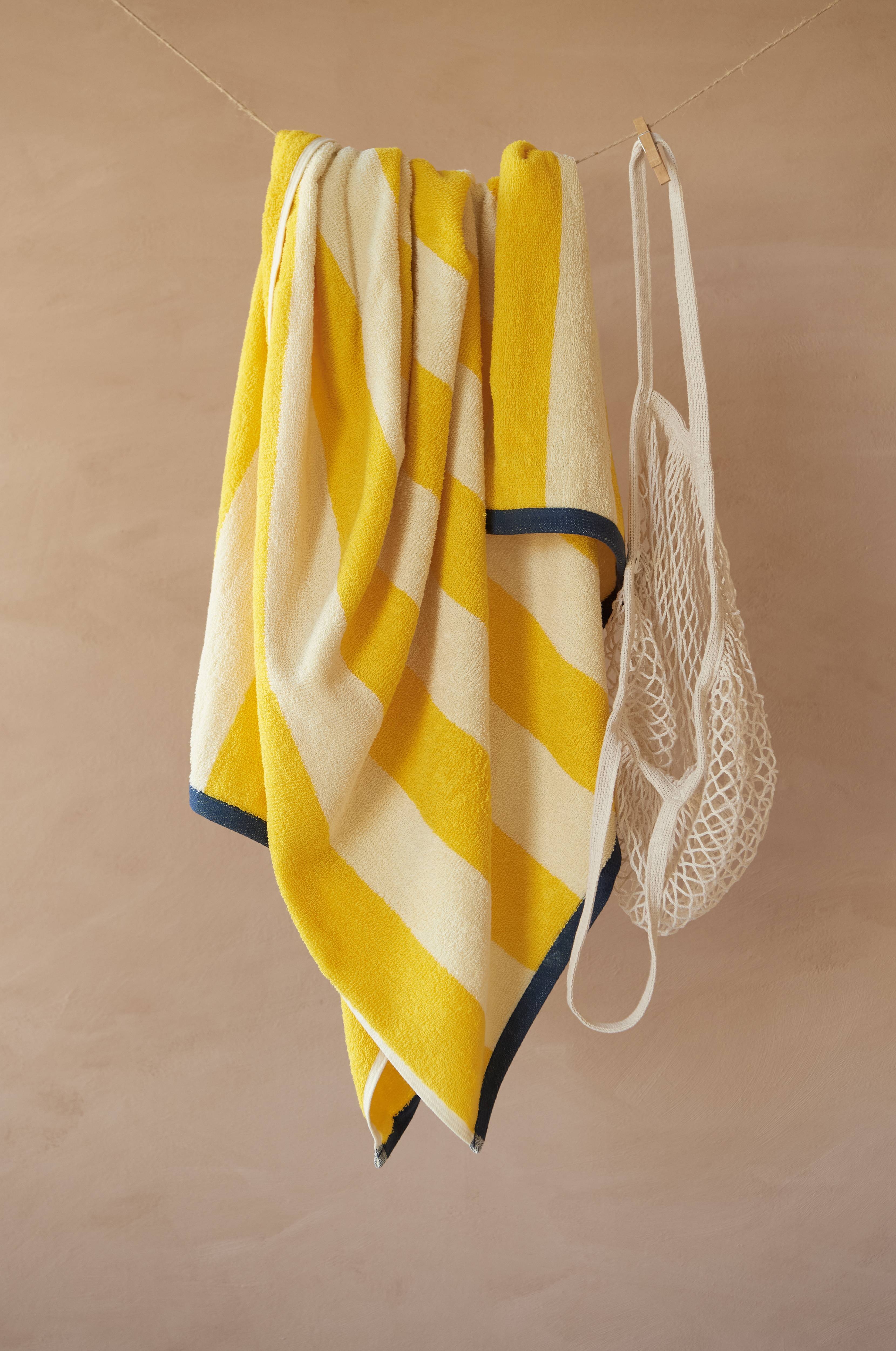 • Randig strandhandduk i mjuk, skön bomullsfrotté