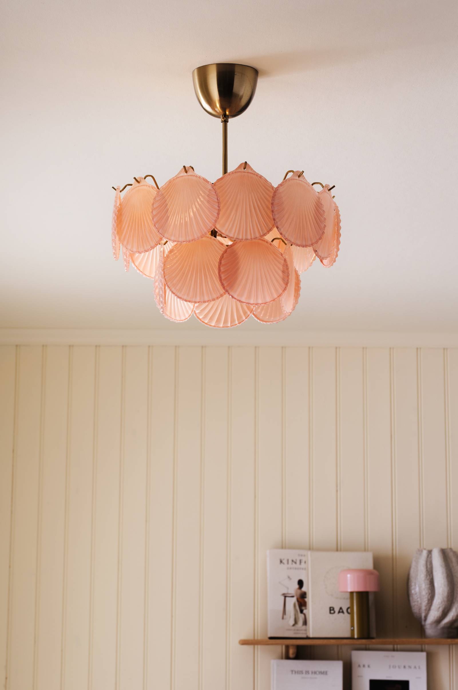• Takplafond med hängande snäckskal i glas• Takkopp i metall• Metallstomme• Krokupphängning• Tre ljuskällor• Ljuskälla ingår ej• Takkontakt ingår ej (köps separat)