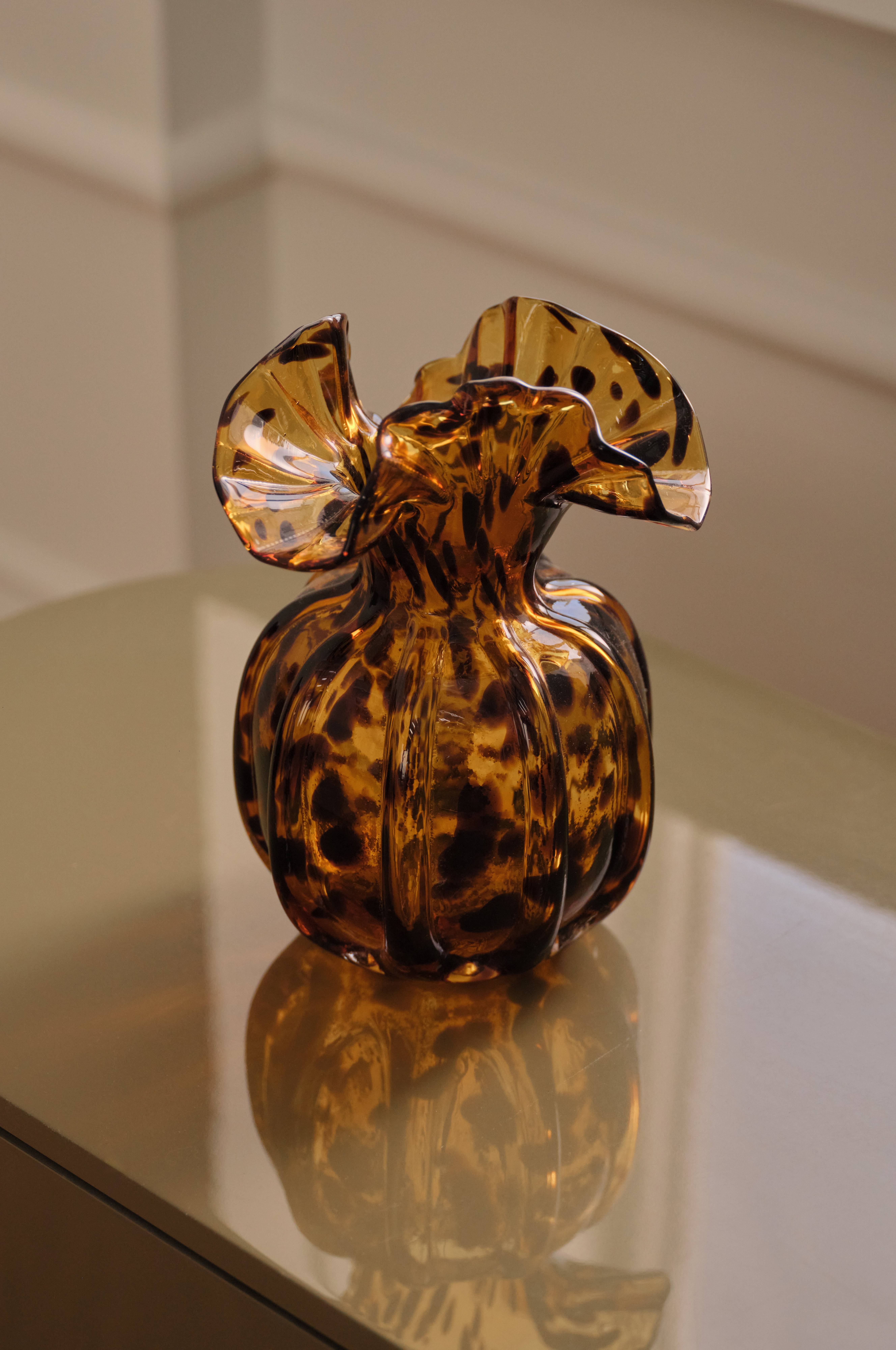 • Vas i mönstrat glas• Diameter öppningen (innerdiameter): 4,5 cm.