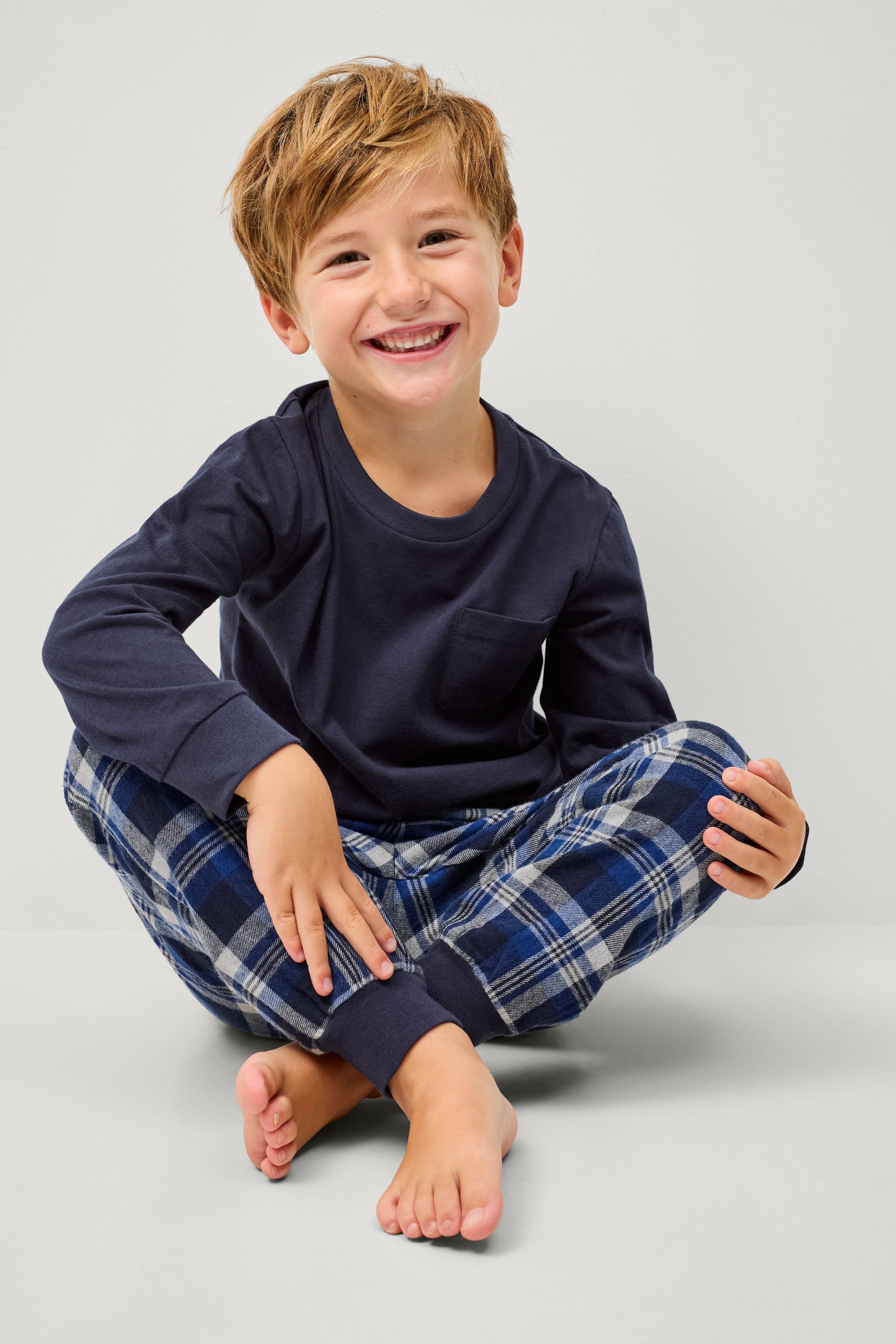 • Byxor i flanell med elastisk linning med dragsko och mudd i bensluten