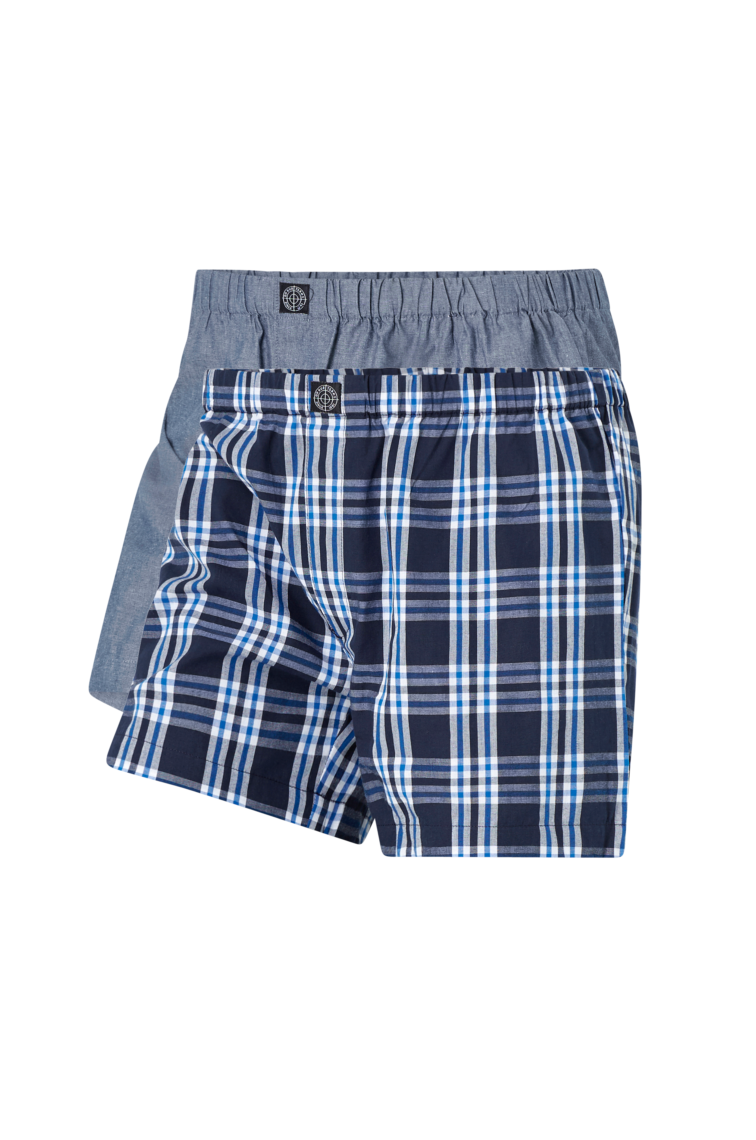 Boxerkalsonger i 2-pack i vävd bomullskvalitet. Resårlinning och fuskgylf.