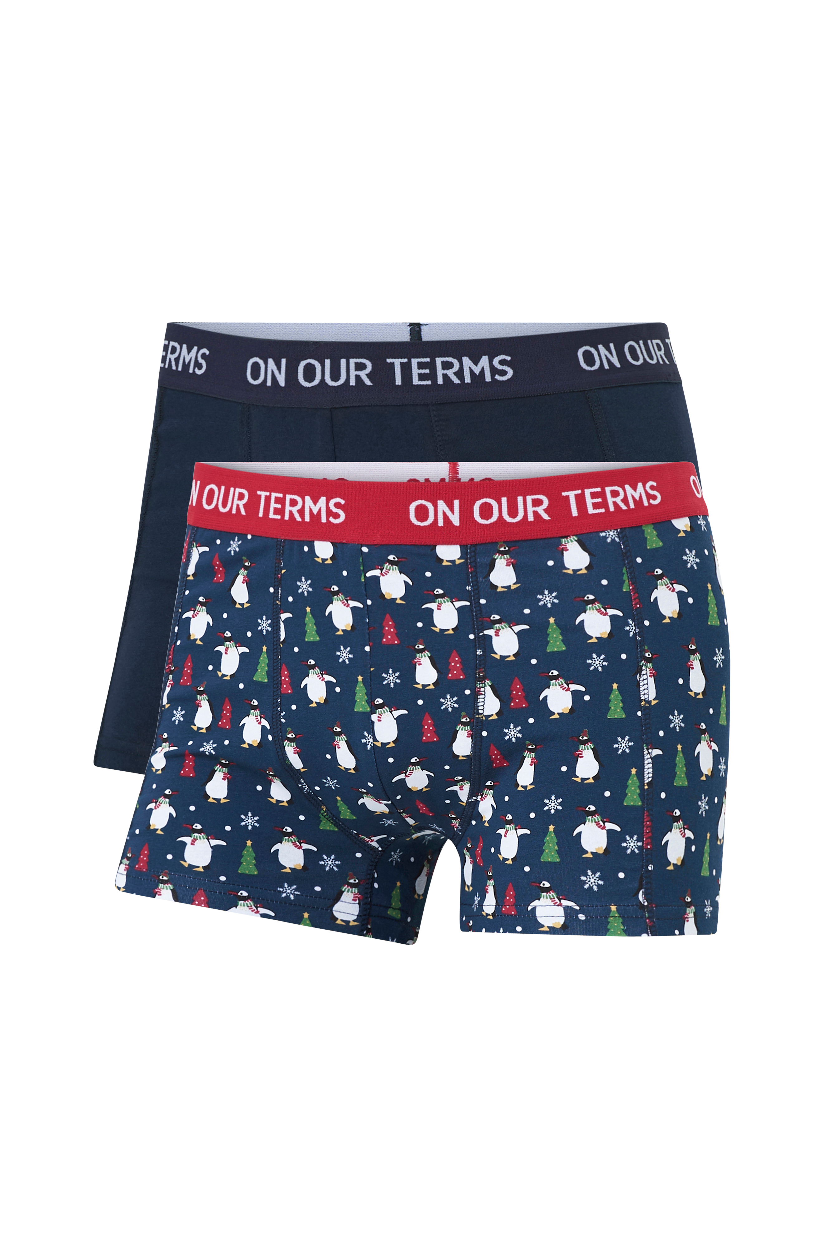Boxerkalsonger Max i 2-pack från On Our Terms. Tillverkade i stretchig bomullstrikå. Dubbel front och resårlinning med logo.