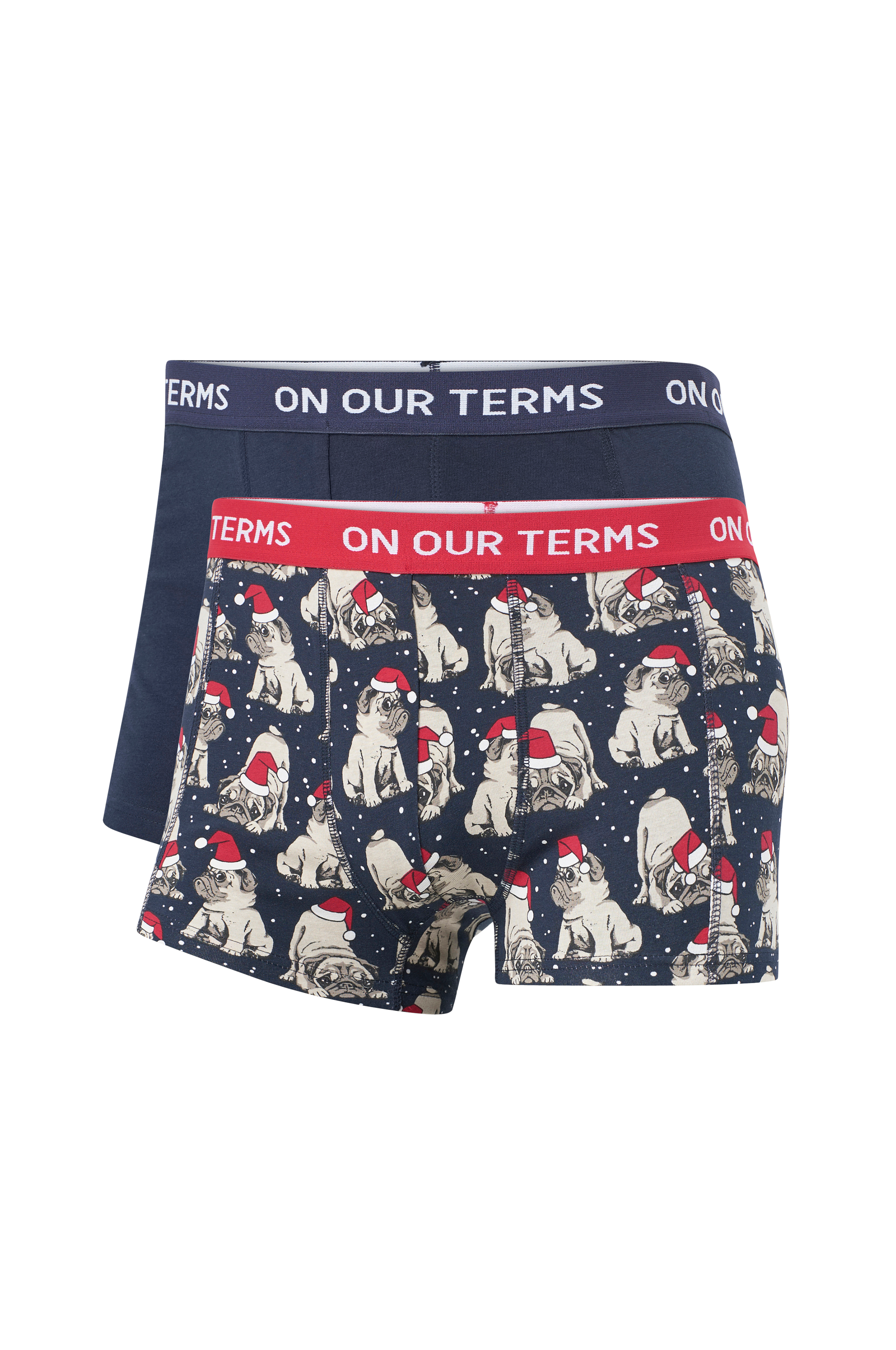 Boxerkalsonger Max i 2-pack från On Our Terms. Tillverkade i stretchig bomullstrikå. Dubbel front och resårlinning med logo.