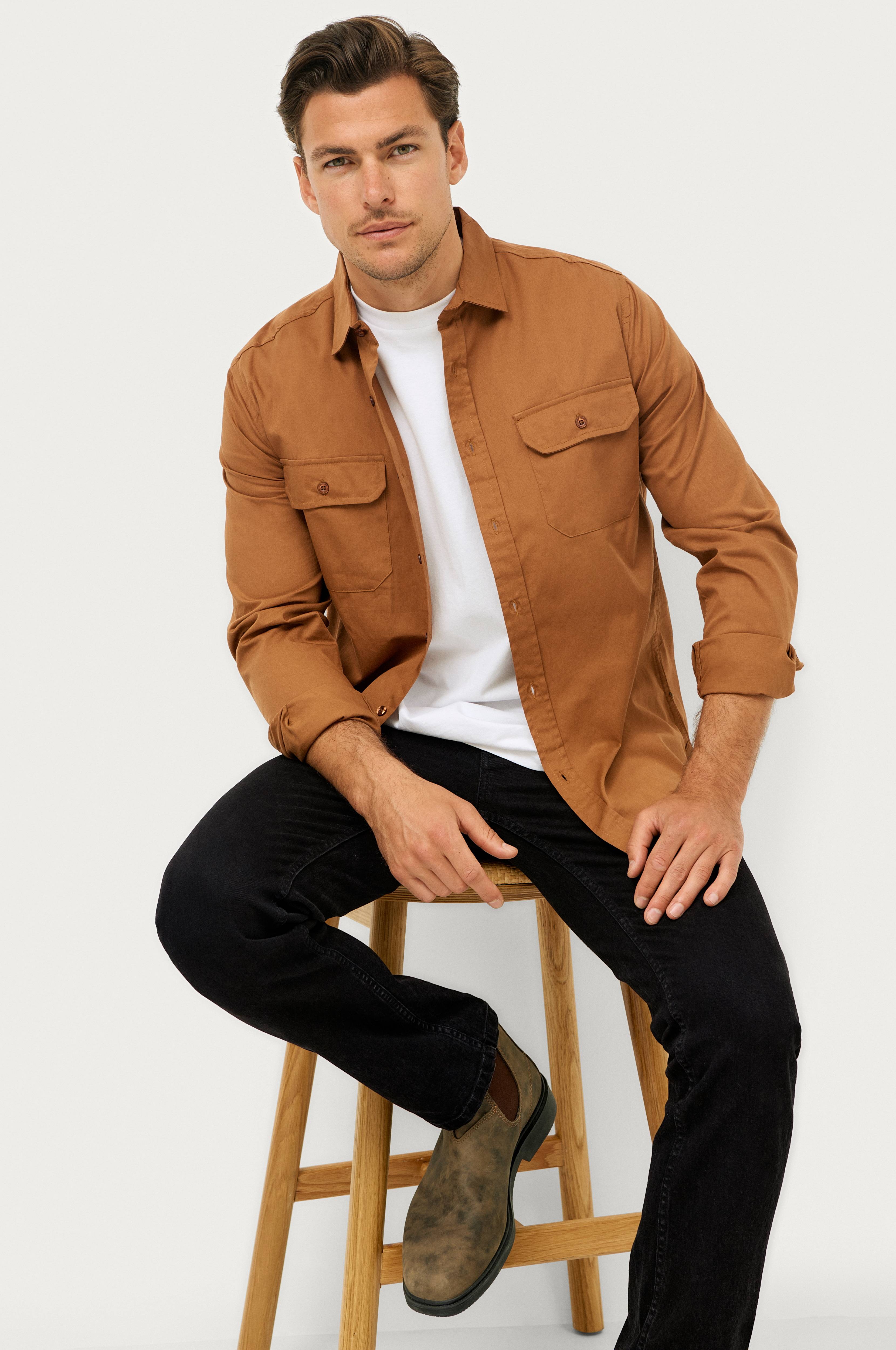 DUBBLA bröstfickor. Lagom tunn. Snygg färg.