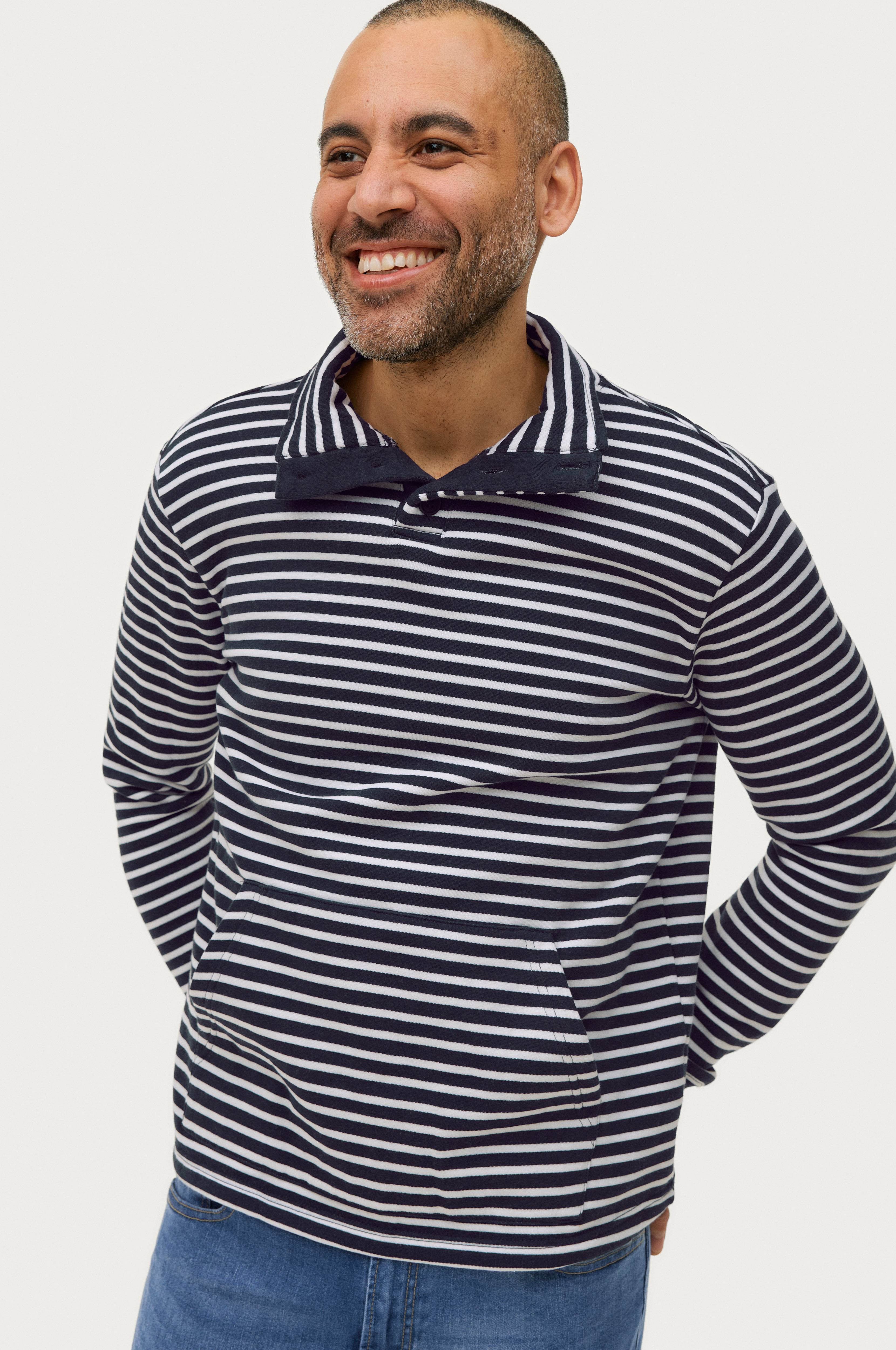 Sweatshirt i bomull med hög krage och tre knappar. Magficka. Ribbade muddar i ärmsluten.