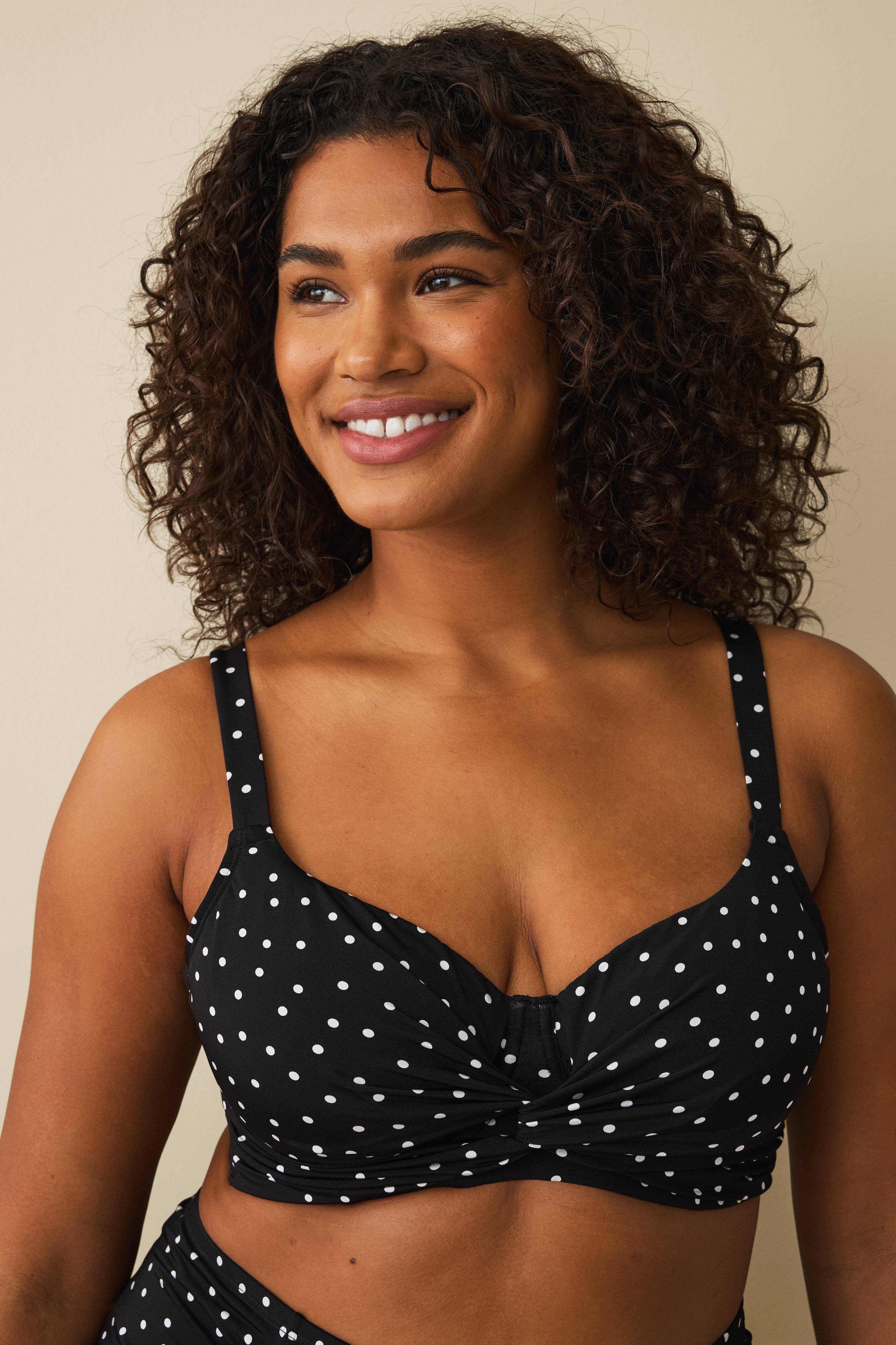 • Helfodrad, ovadderad bikini-bh med knytdetalj fram• Kupa med bygel• Knäppning i ryggen med silverfärgat spänne• Justerbart axelband• Plusstorlekar