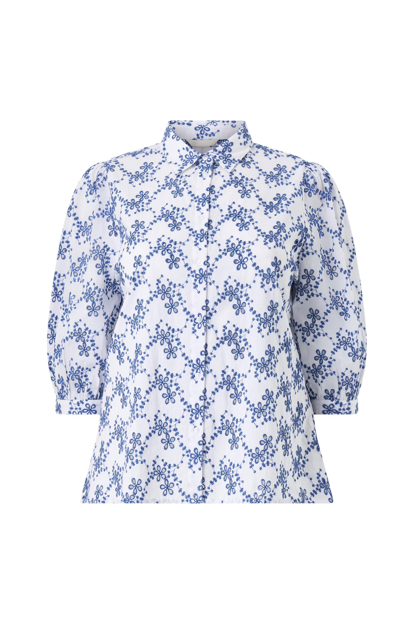 • Hålmönstrad blus med broderat mönster