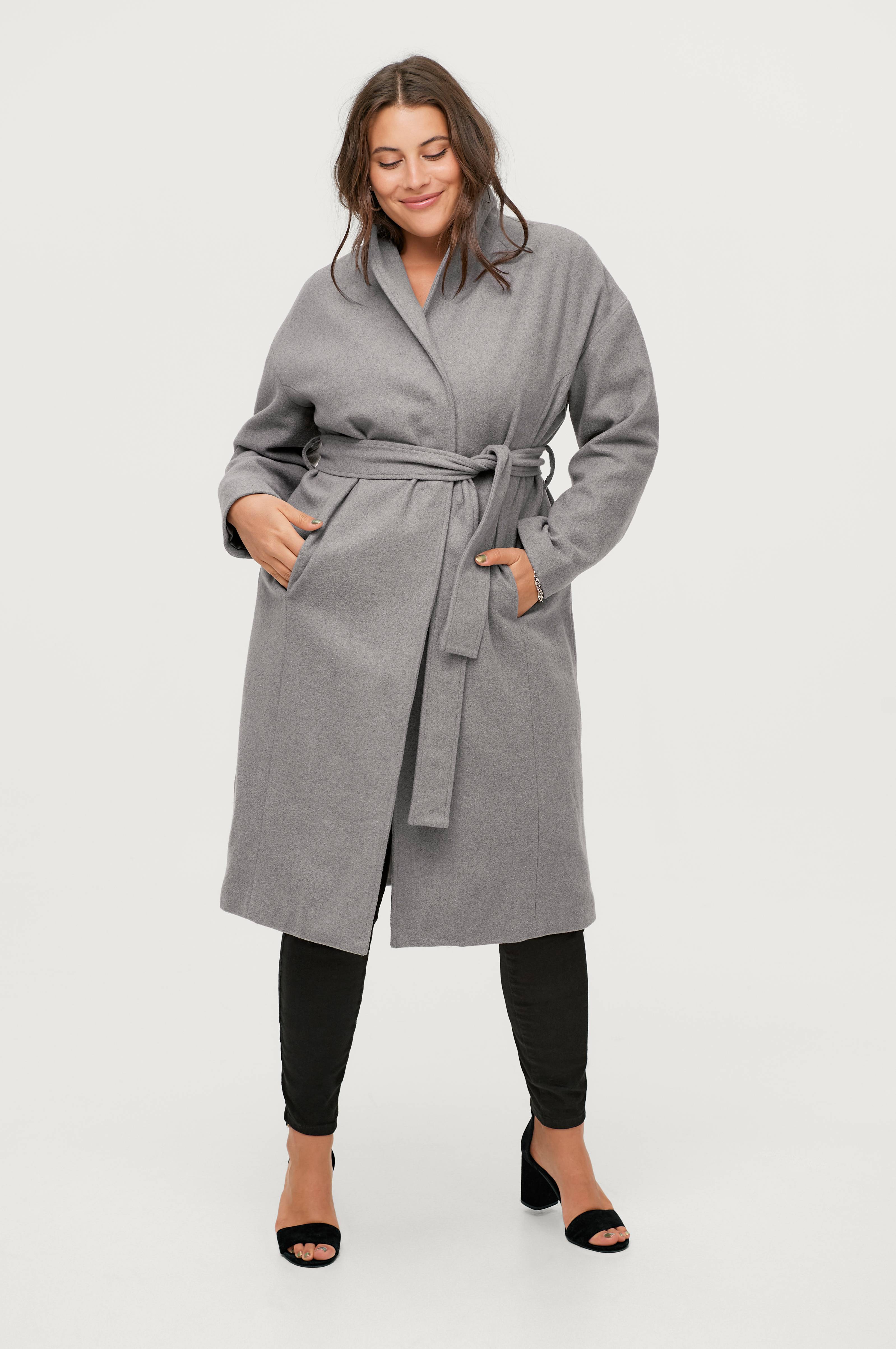 Kappa Dagny med skön ullkänsla och slätt, vävt foder. Sjalkrage och dolda tryckknappar. Avtagbart knytskärp i hällor. Två fickor och sprund nedtill bak. Längd ca 111 cm i stl 44.