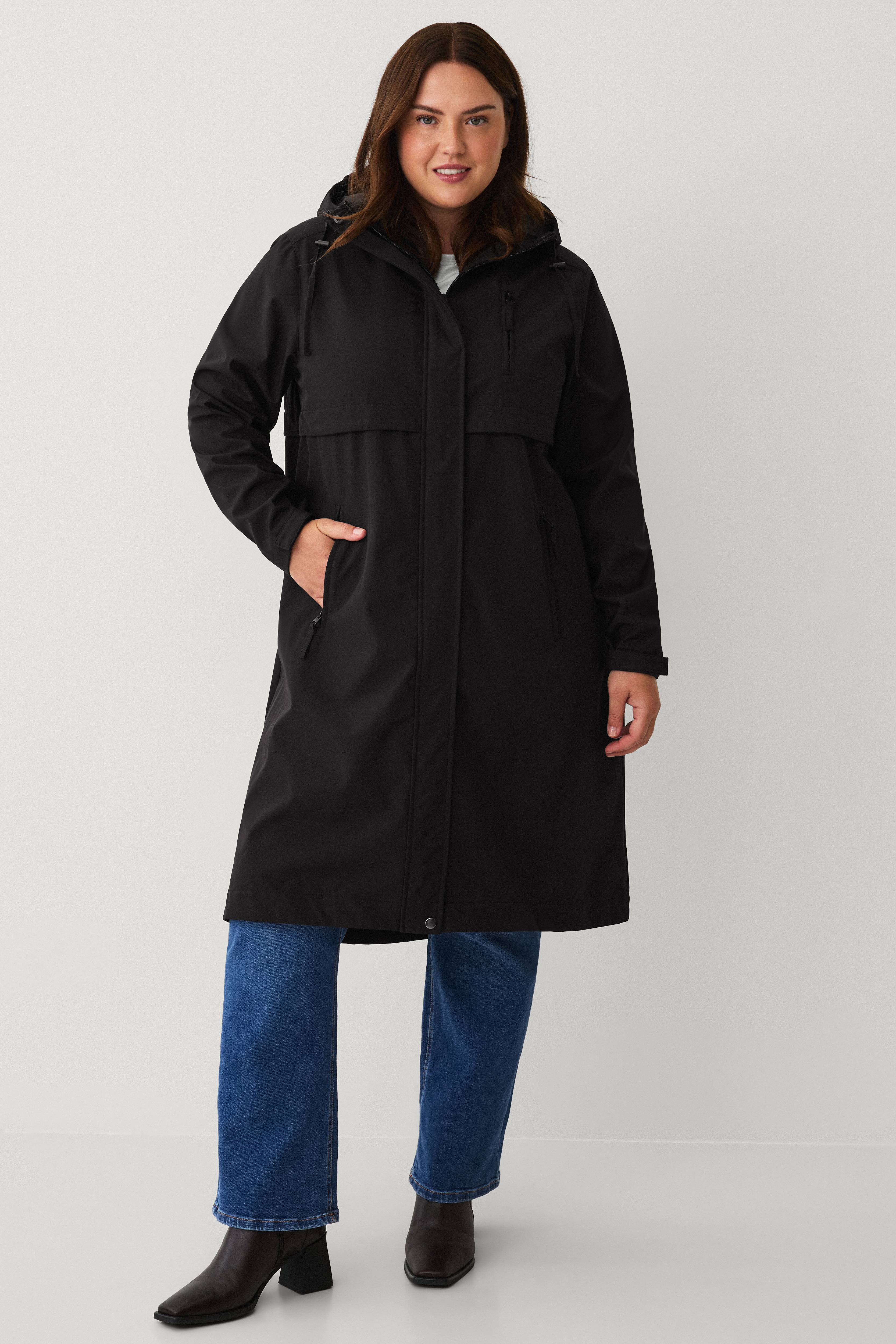 Snygg, figurvänlig, känns jättebra! Väldigt lång på mig som är 160 cm, men det passar perfekt nu i höstvädret och skyddar även benen när jag är ute mycket. Lite stor i storlek, jag brukar ha…