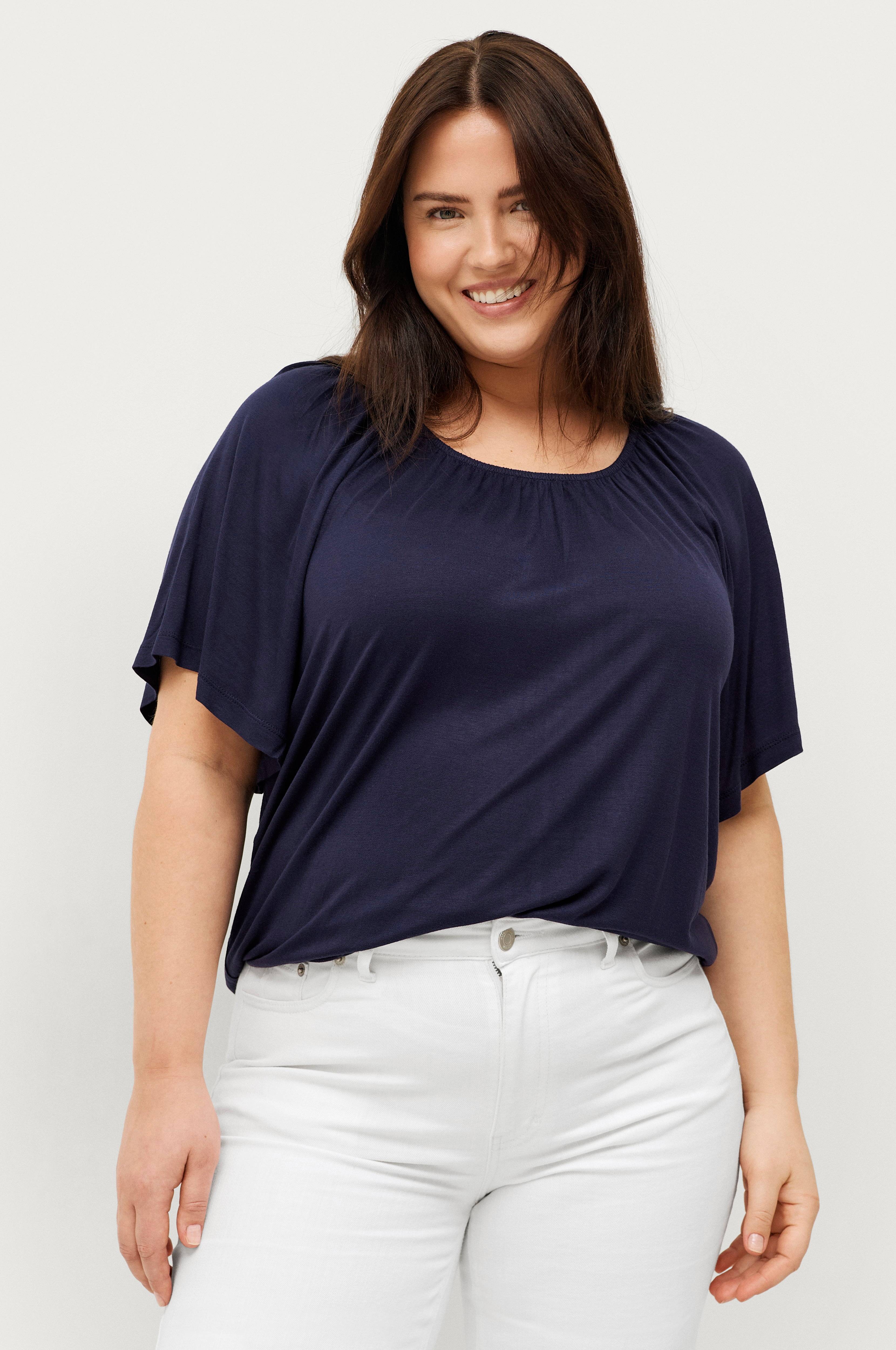 • Korta, vida ärmar