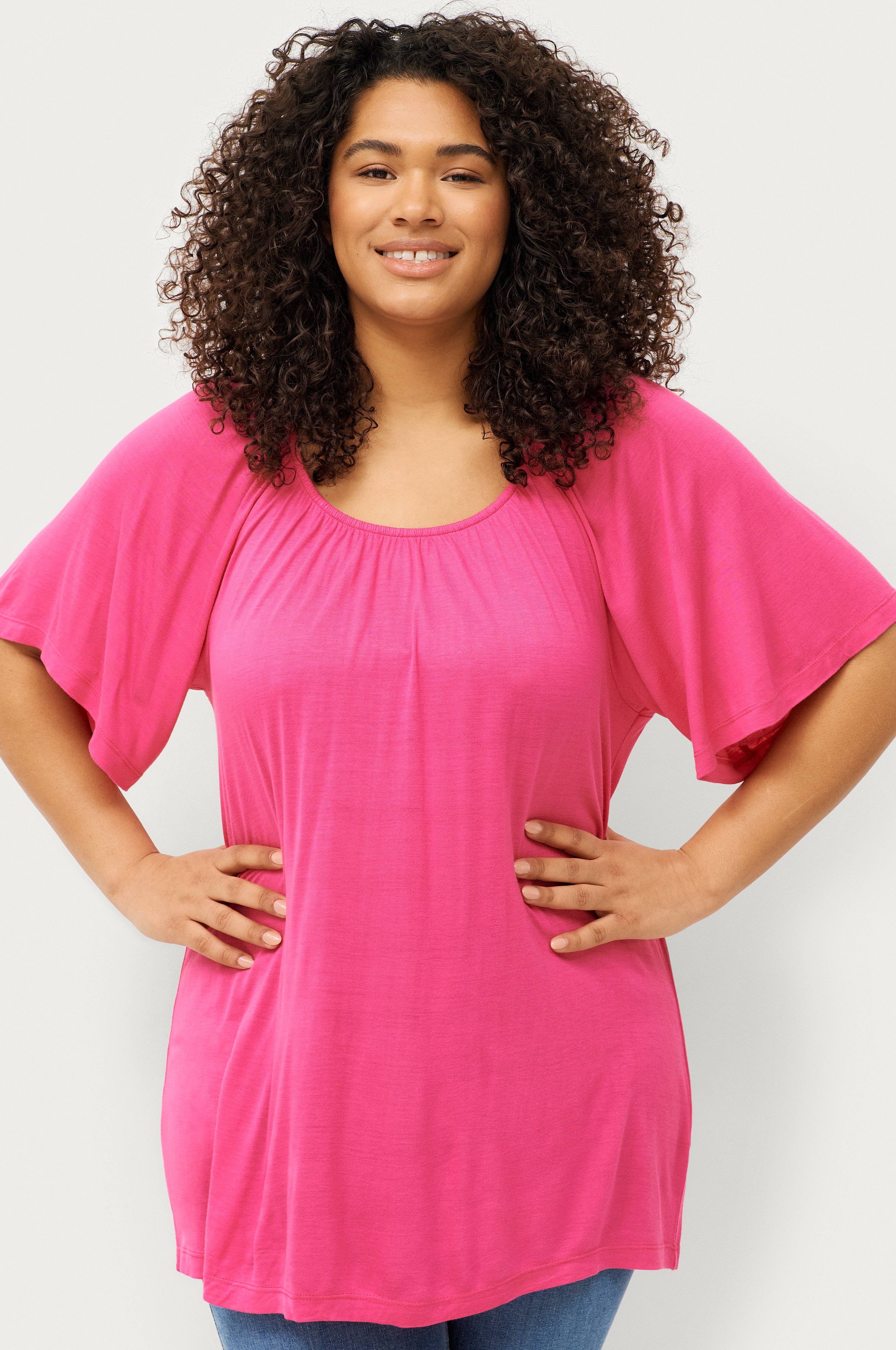 • Korta, vida ärmar