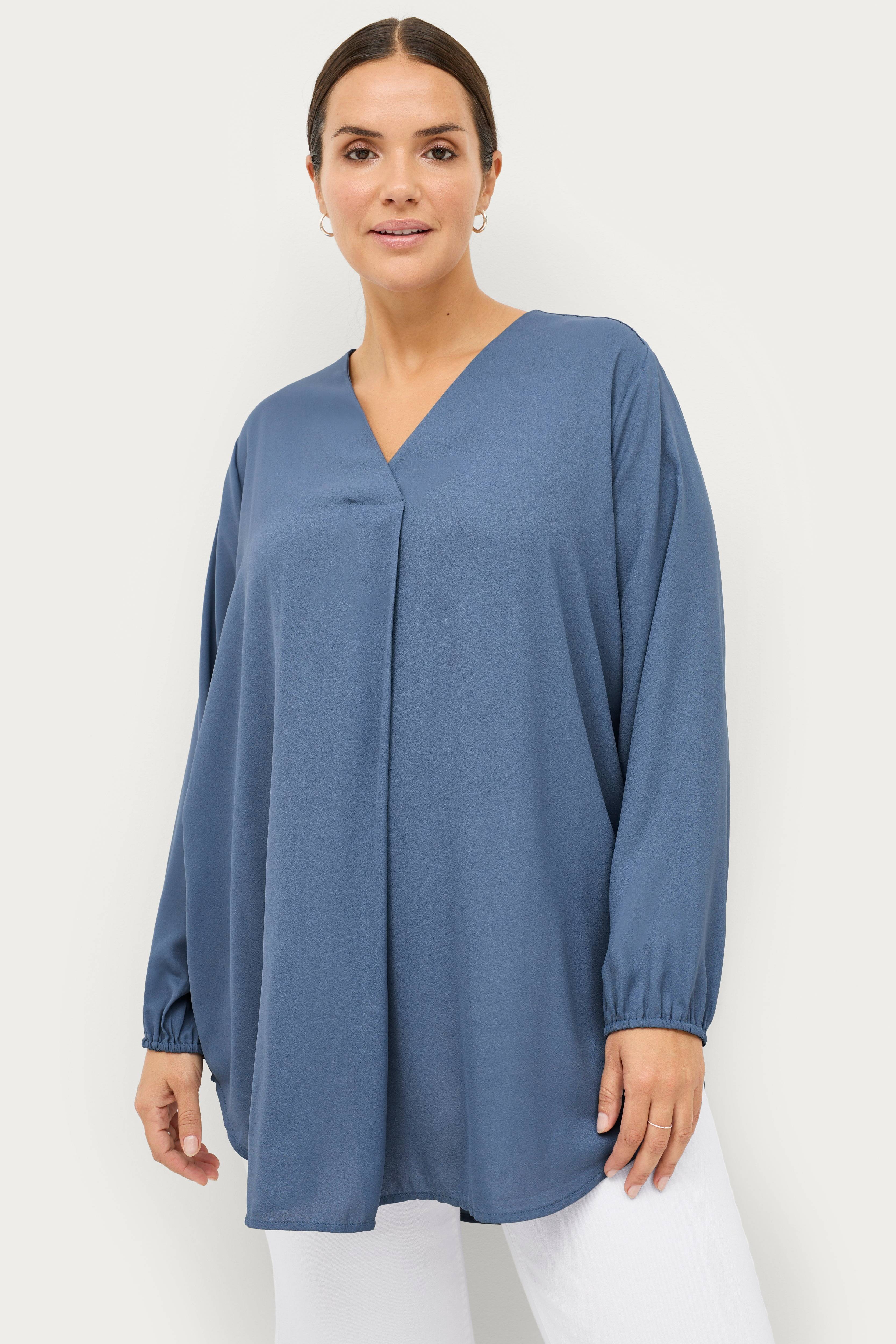 • V-ringad hals • Veck fram • Långa ärmar med resår i ärmsluten • Rundad nederkant • Längd: 88 cm i storlek 46/48 • Produkten innehåller återvunnet material som har tagits tillvara för att minska mängden avfall, samtidigt som nya resurser inte har förbrukats.