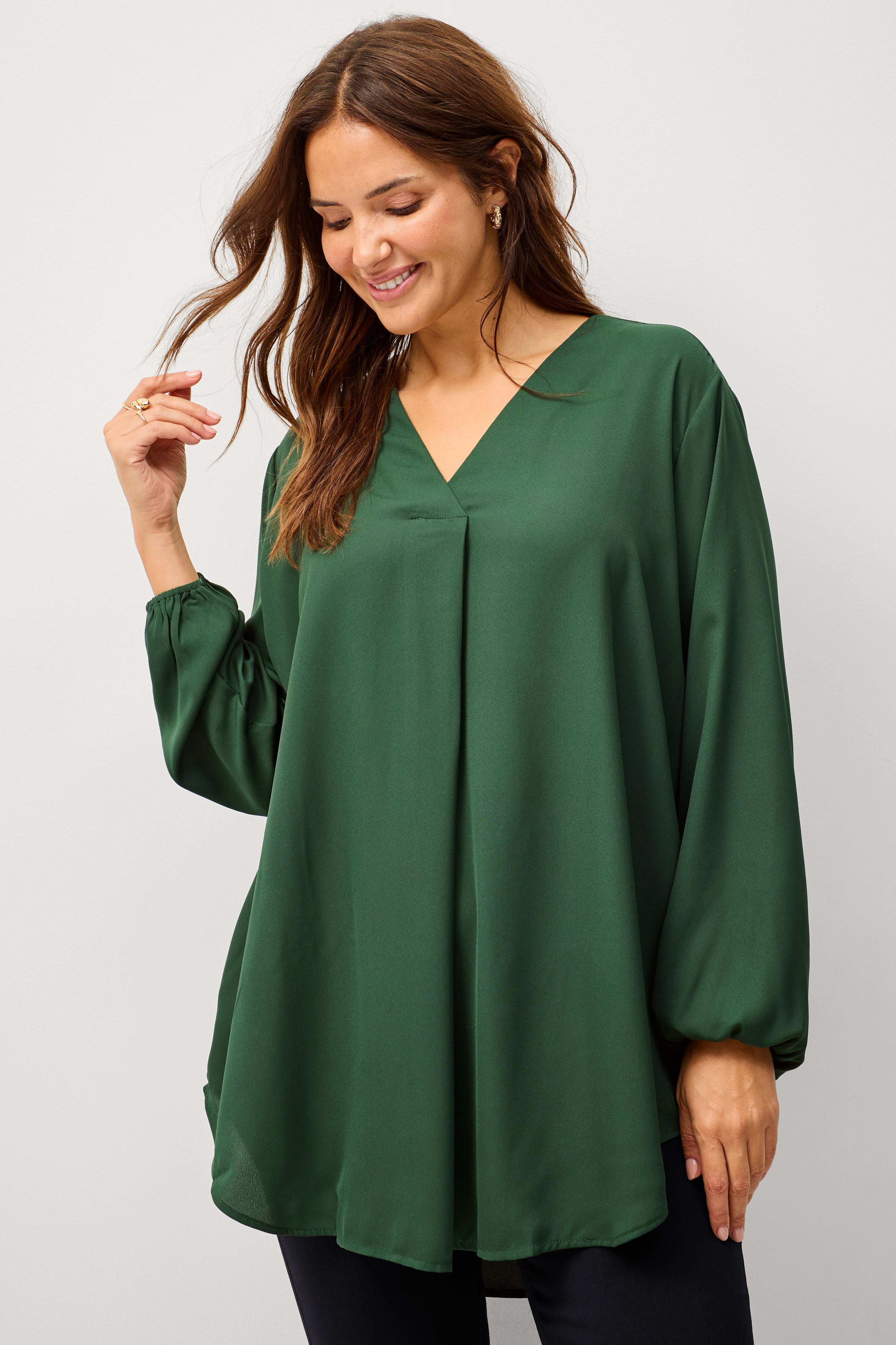 • V-ringad hals • Veck fram • Långa ärmar med resår i ärmsluten • Rundad nederkant • Längd: 88 cm i storlek 46/48 • Produkten innehåller återvunnet material som har tagits tillvara för att minska mängden avfall, samtidigt som nya resurser inte har förbrukats.