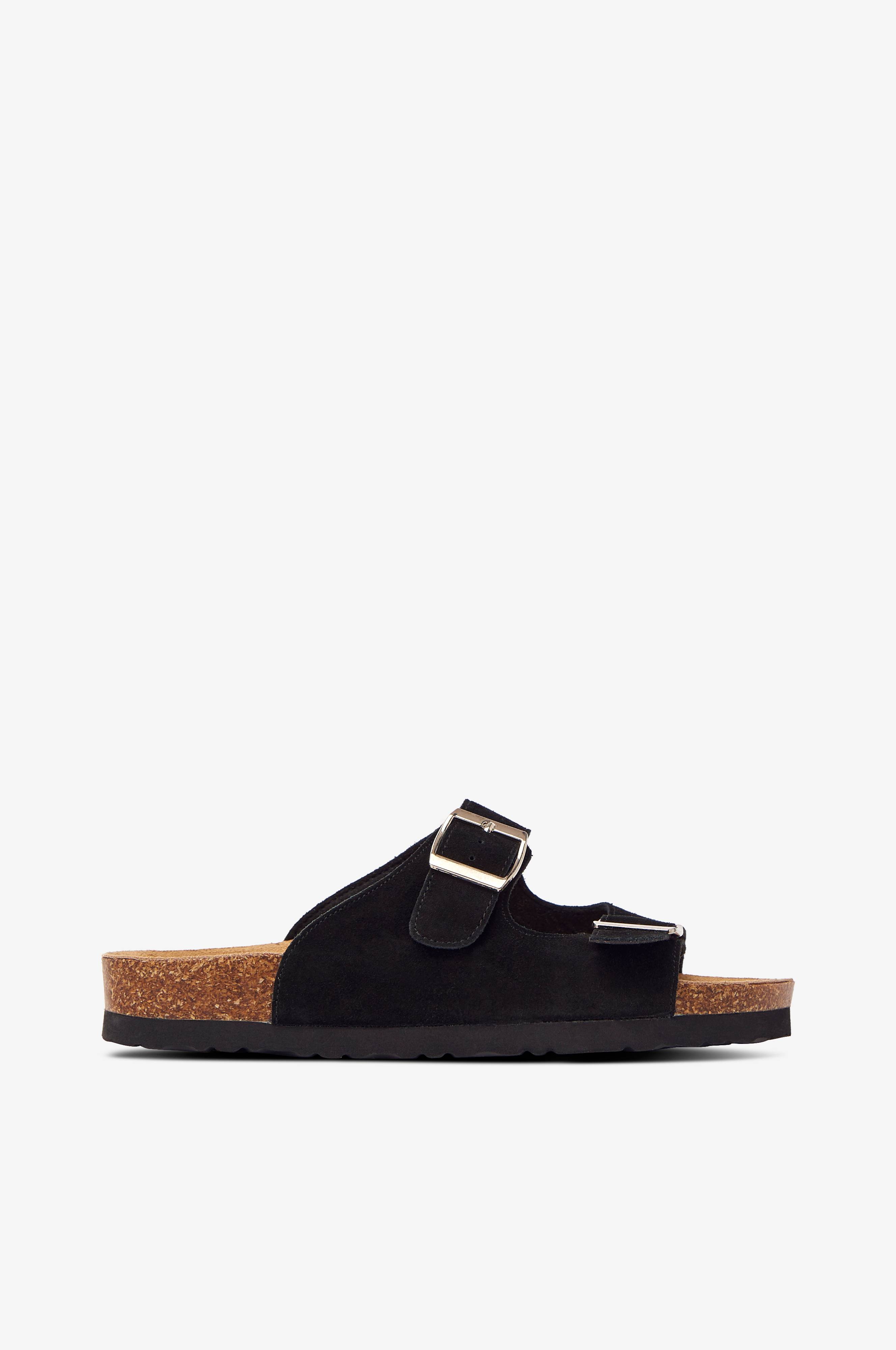 Sandal Two Straps i bekväm, fotriktig och stabil modell med anatomisk fotbädd. Remmar i mjuk mocka med justerbara metallspännen. Fotformad innersula med velourkänsla.