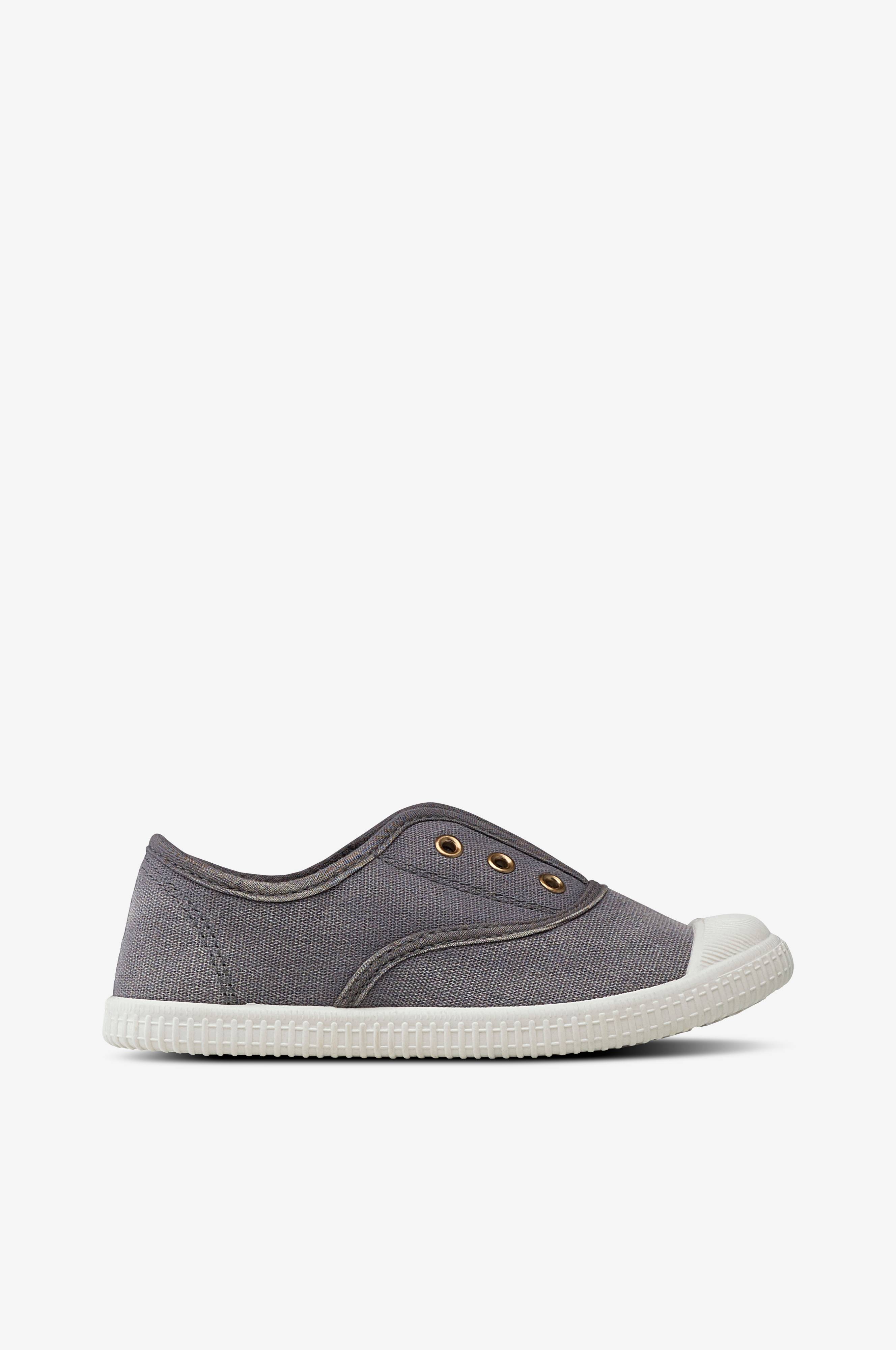 Sneakers i bomullscanvas med resårplös för smidig på- och avtagning. Gummiförstärkt tå ger extra slitskydd. Yttersula i gummi med räfflade sidor och undersida med stjärnor.
