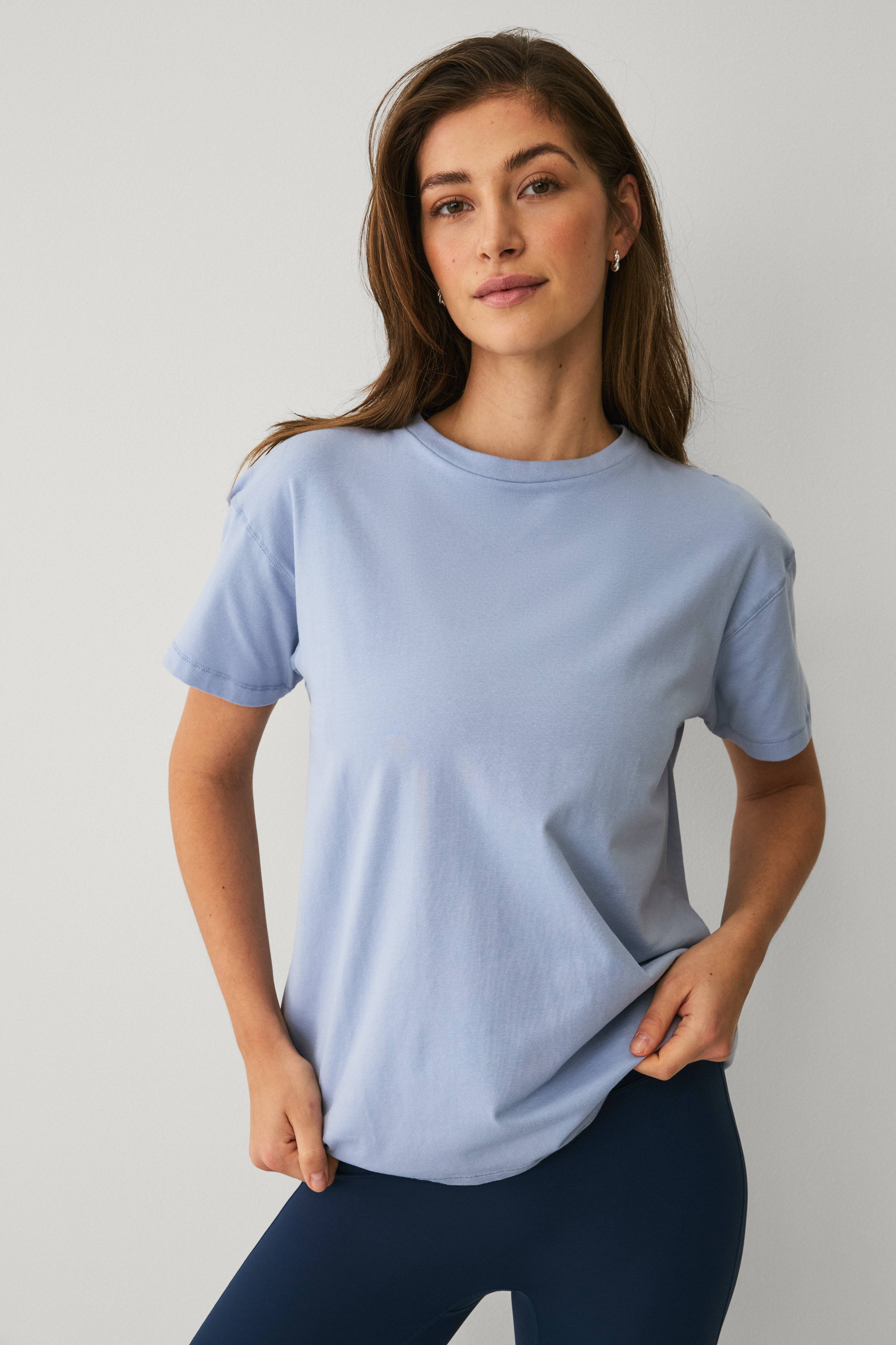 • Avslappnad passform• Korta ärmar• Gjord av bomullstrikå• Längd: 66 cm i storlek S
