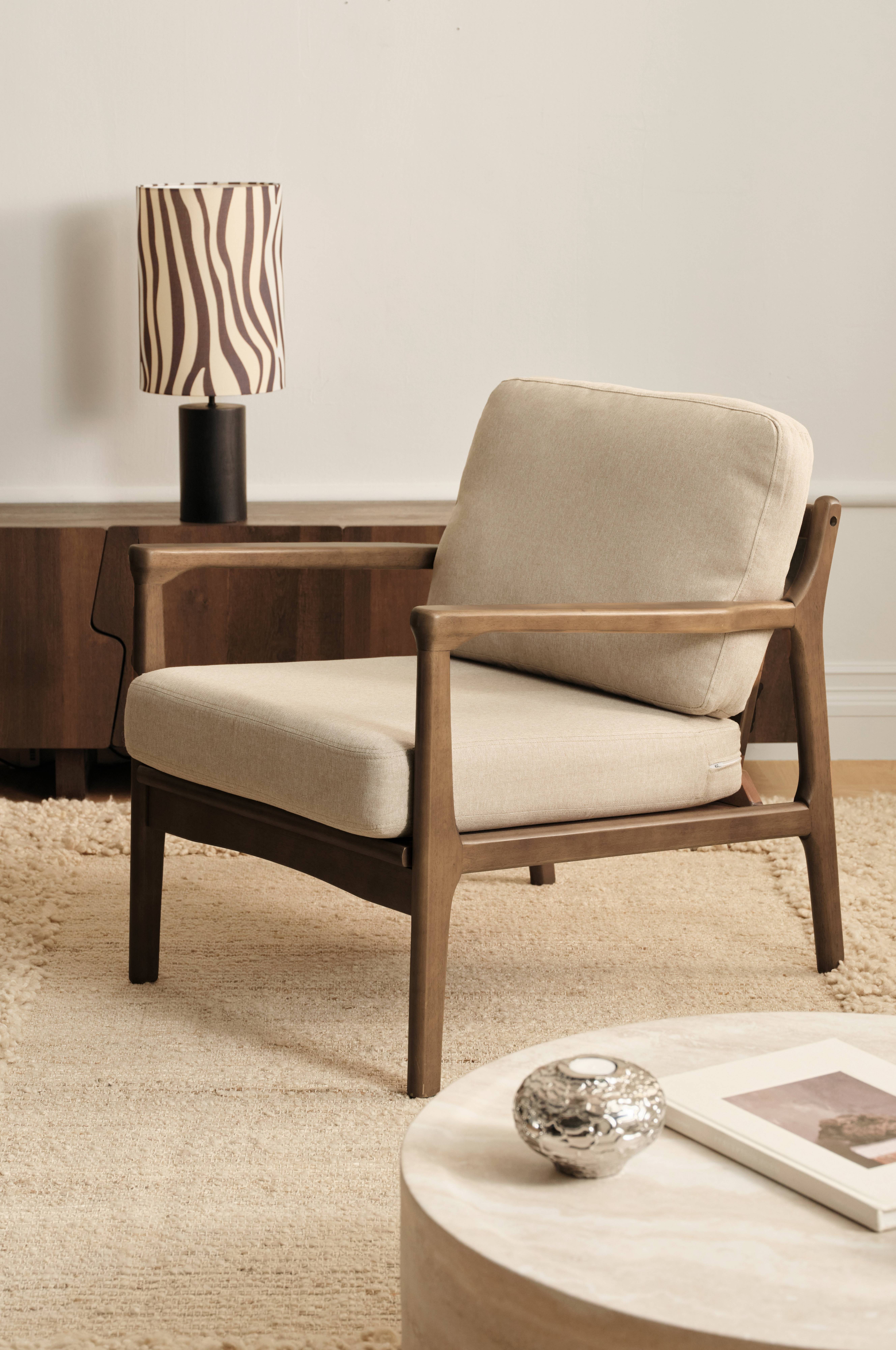 • Fåtölj i gummiträ med sittdyna och ryggdyna • Skumfyllning • Sittbredd: 55 cm • Max viktbelastning: 150 kg. • Produkten innehåller FSC-certifierat trä, avverkat från ett ansvarsfullt skogsbruk som tar hänsyn till människor och miljö. • Vill du titta närmare på ett tyg och känna på kvaliteten? Mejla oss på customerservice@ellos.se eller ring 033-33000 och beställ hem ett gratis tygprov! Ange det artikelnummer du ser längst ner i denna beskrivning.