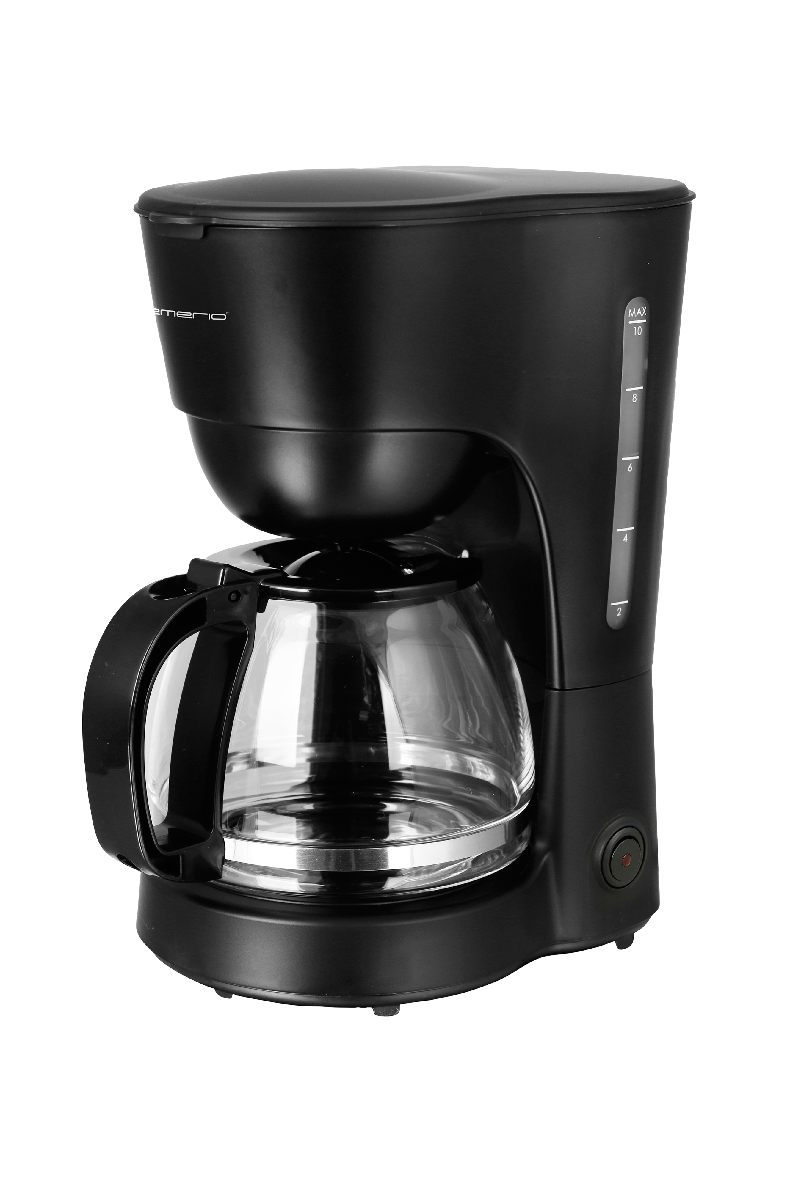 Designen är tidlös i svart och består av en genomskinlig glaskanna och vattentank med tydliga vattennivåindikationer. Bryggaren har ett lock och handtag i svart värmebeständigt material. Kaffebryggaren har också ett medföljande återanvändbart filter, droppskydd och automatisk avstängning.