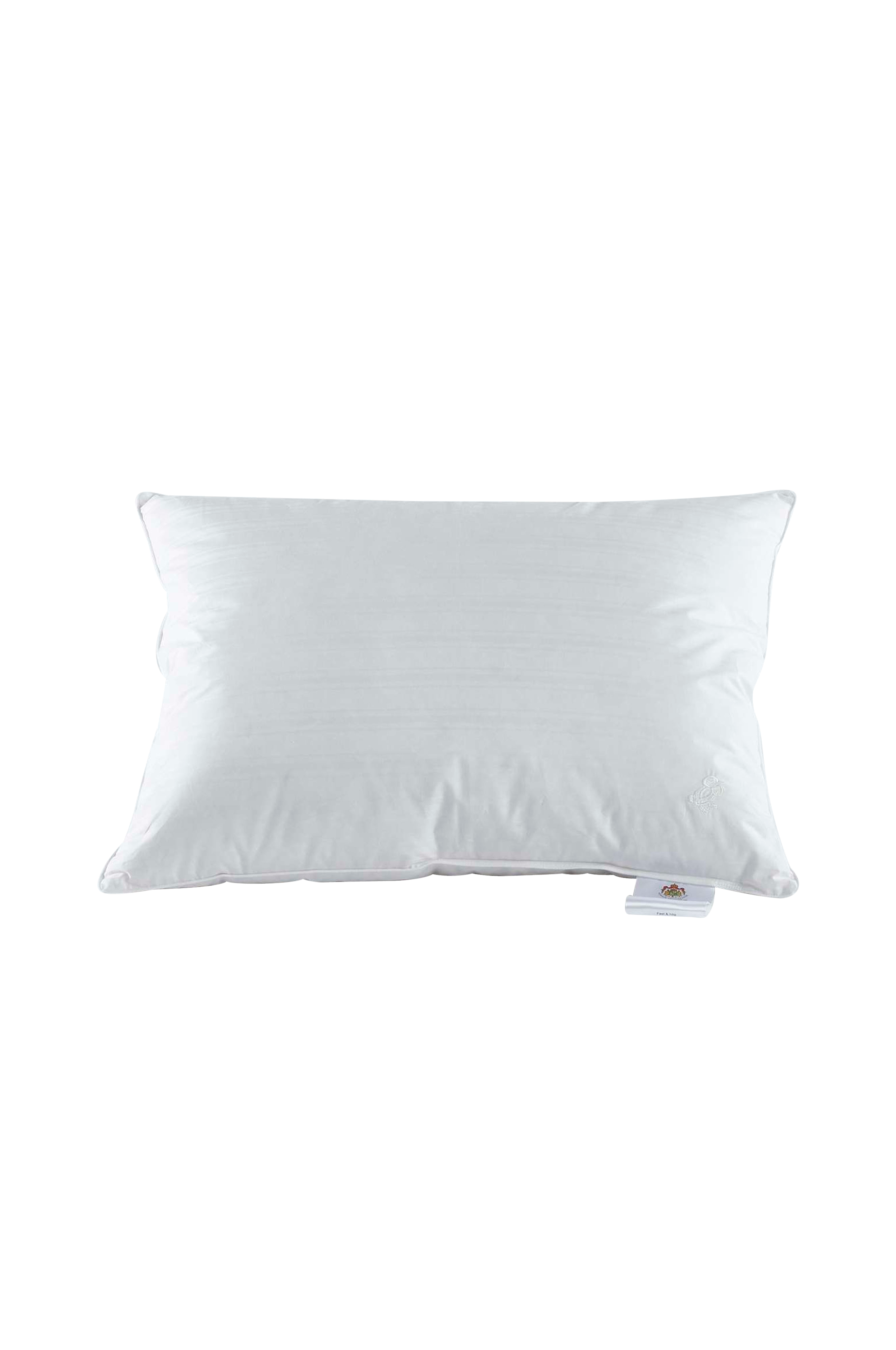 Med Astrid vilar du mjukare eller fastare, men alltid skönare. Mycket skönare. 60% Europeiskt vitt gåsdun. Bärighet 550 (7) Mjukt, tätt tyg i finaste bomullscambric/twill. Färg: Vitrandig ovansida/Vit undersida. Passpoal i vitt, broderi i vitt. 800g gram