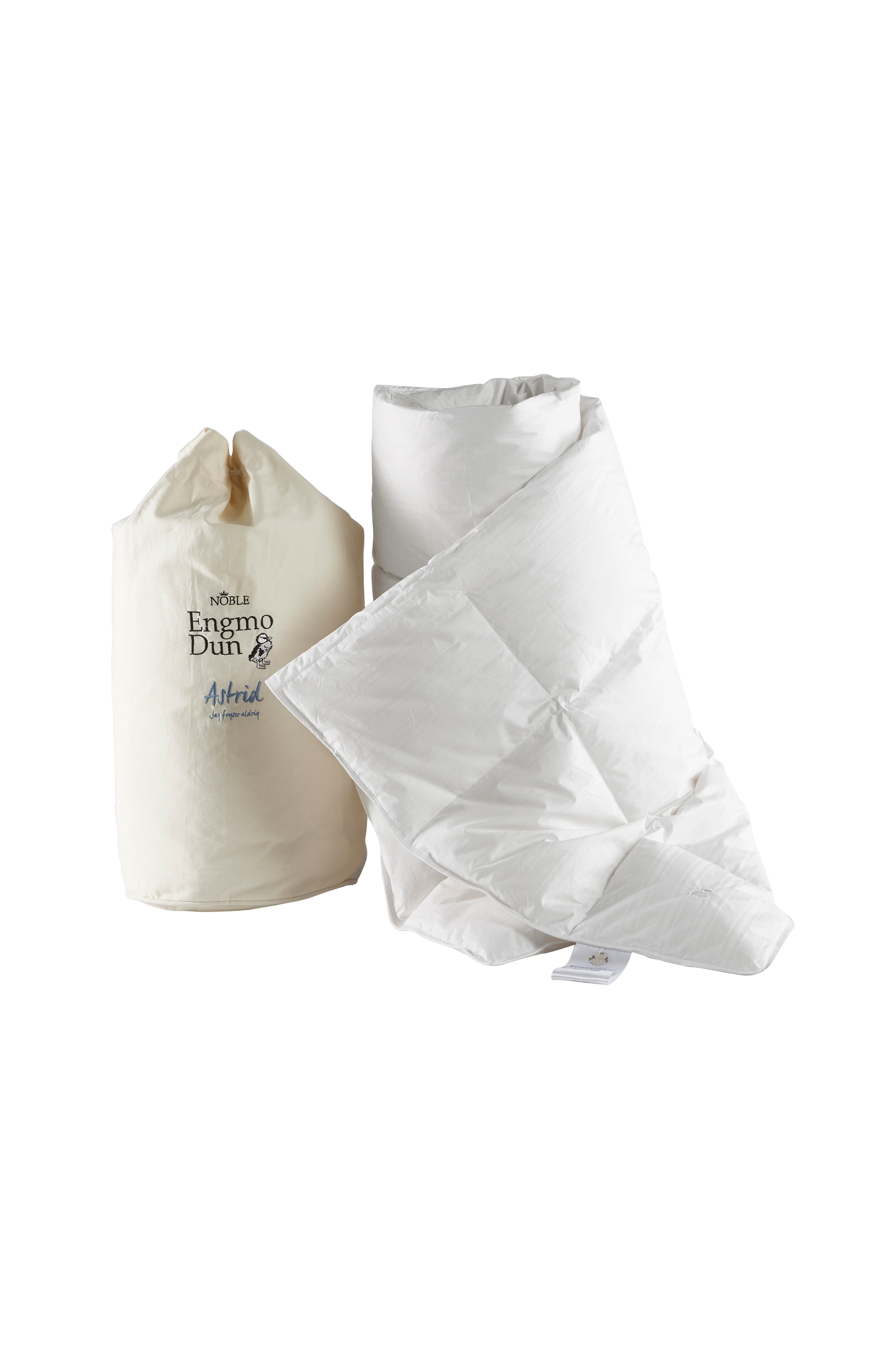 Astrid är ett elegant och välsytt duntäcke fyllt med 100% europeiskt gåsdun i ett mjukt, tätt tyg av finaste bomullscambric/twill. Täcket är sytt i rutor med mellanväggar som fördelar dunet jämnt. Ovansidan är vitrandig och undersidan vit med passpoal och broderi. Fyllning: 100% europeisk gåsdun. Tyg: 100% bomullscambric (Ne60/60)