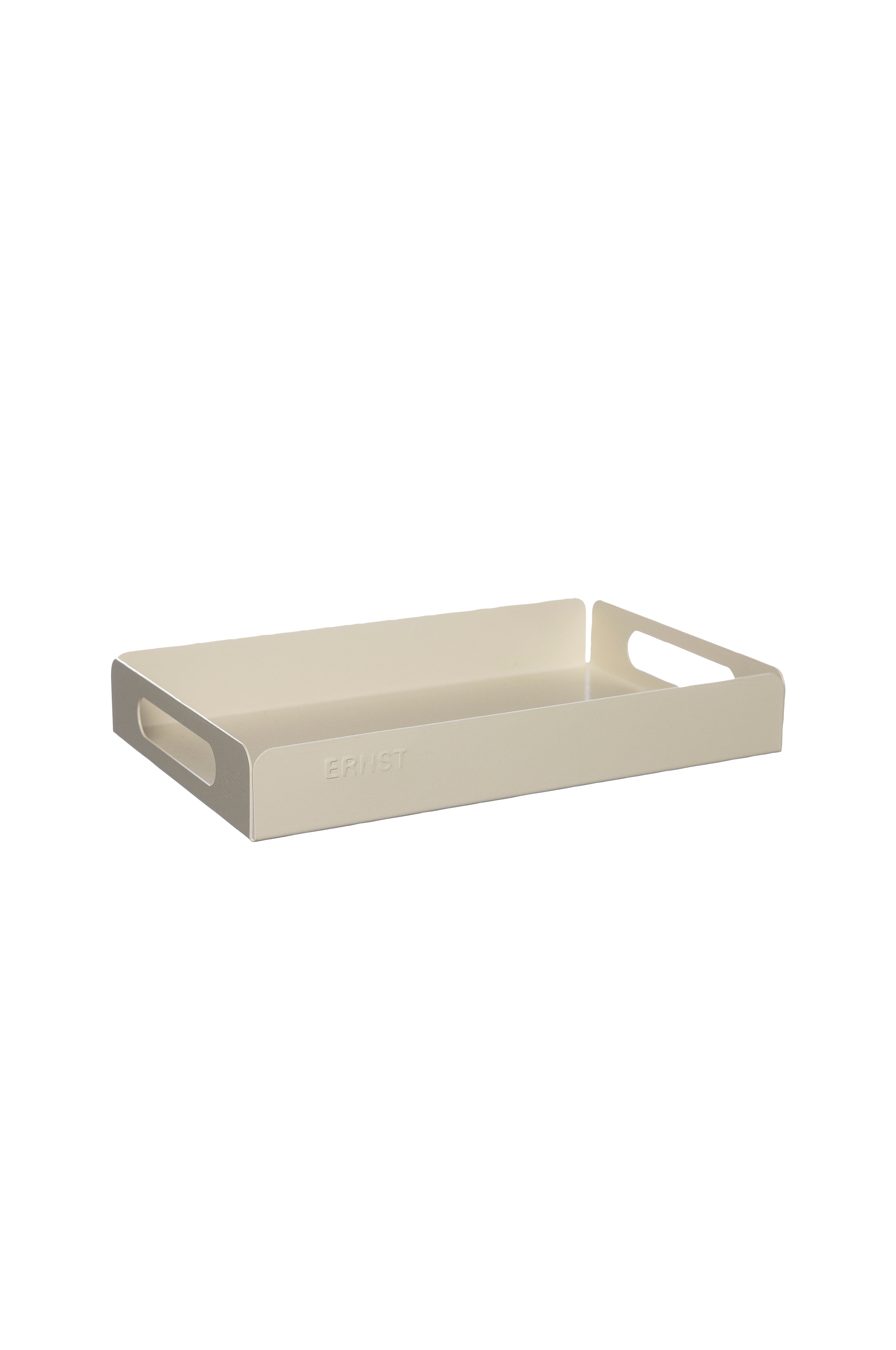 Ernst bricka i metall, i den harmoniska färgen mole. Med sin rena form och dämpade färg är den perfekt för både servering och som en vacker bas för dina personliga detaljer. En klassisk bricka som skapar en känsla av lugn och ordning, oavsett om den bär frukost på sängen eller ett kvällssnack i soffan.