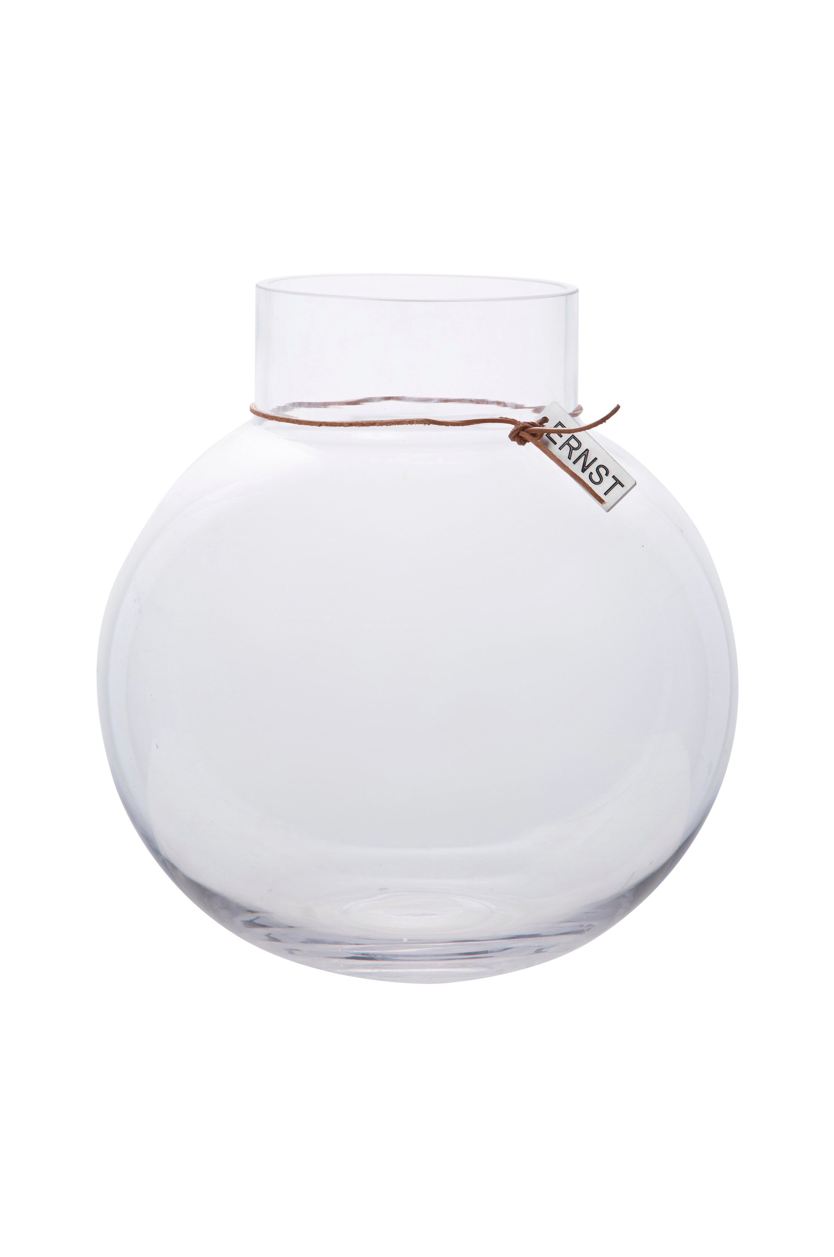 Snittblommor skapar liv och glädje i varje hem. I ERNST populära runda vas med läderband kan du skapa vackra blomsterarrangemang. Tack vare vasens storlek går den även att använda som ljuslykta. Storlek: diameter 9 cm, h 10 cm. Finns i fler storlekar.