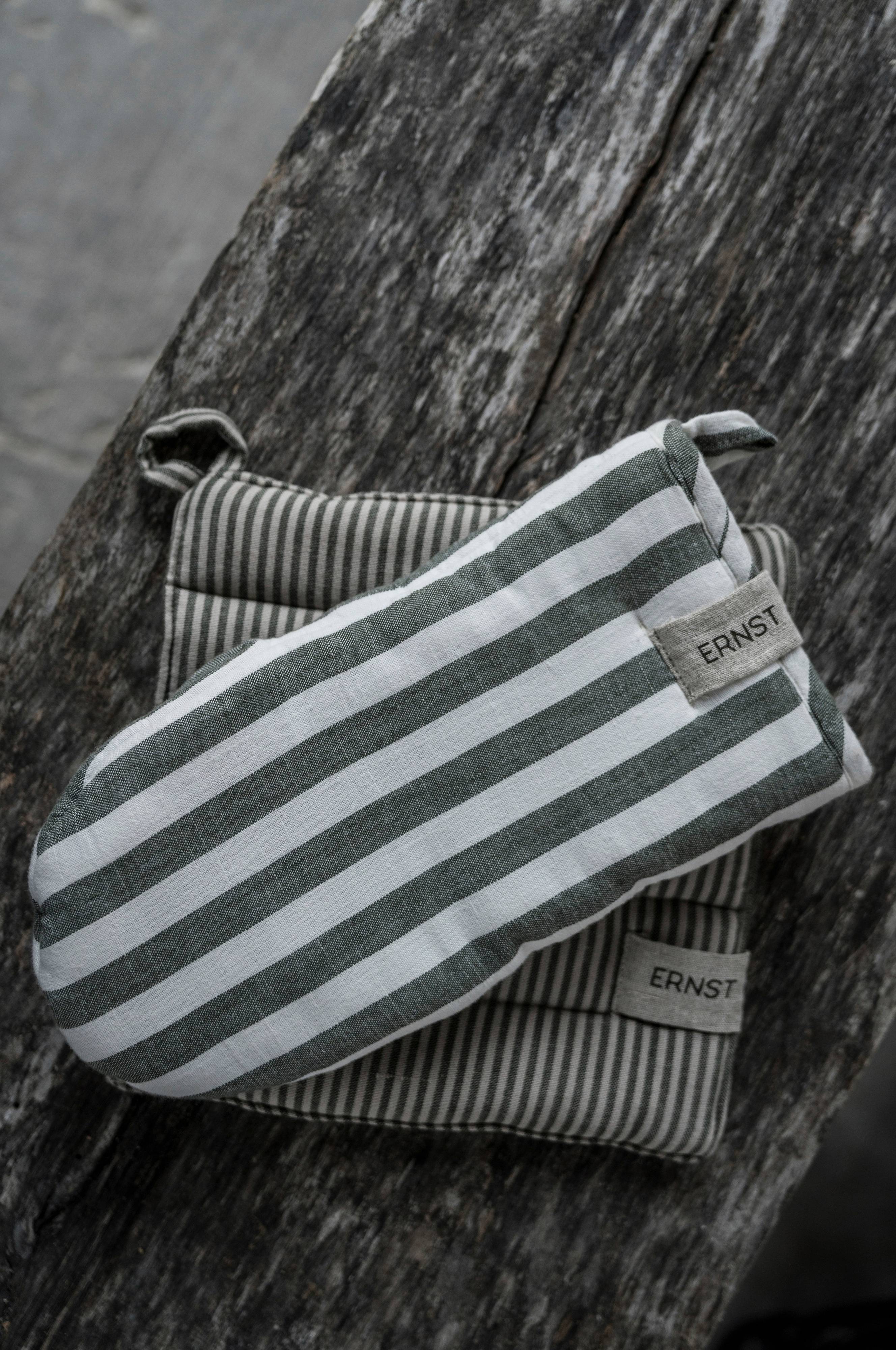 Att fixa och laga mat i köket ska vara roligt och fridfullt. Ernst grytvante i bomull är både snygg och fyller sin funktion för att hantera heta grytor och pannor i köket. I samma serie finns en matchande grytlapp och kökshandduk.
