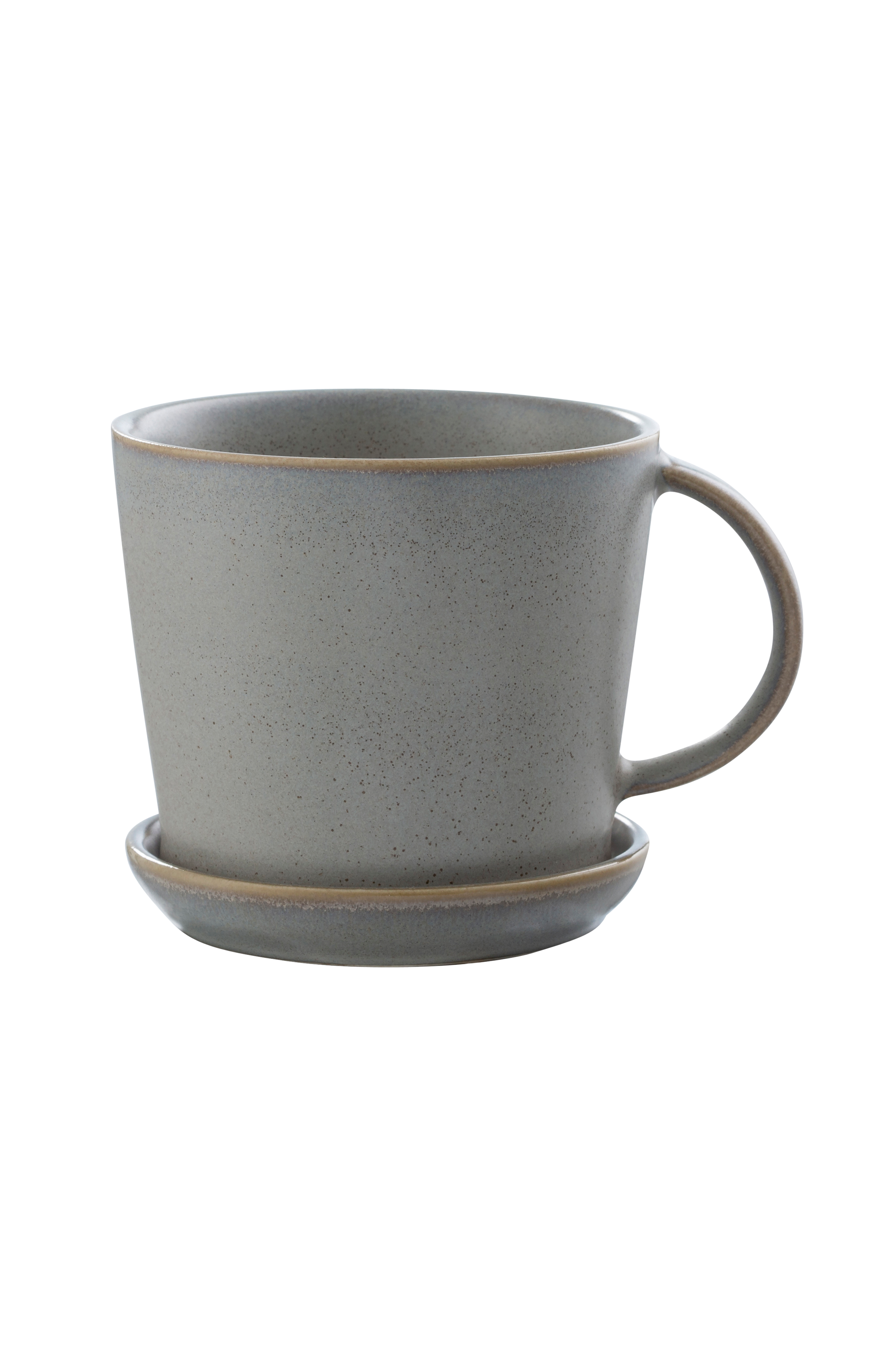 ERNST glaserade kaffekoppar med fat i stengods finns även som tékopp. Kaffekoppen med fat finns i två storlekar: liten diameter 7,5 cm, h 7 cm och stor diameter 10 cm, h 8,5 cm.