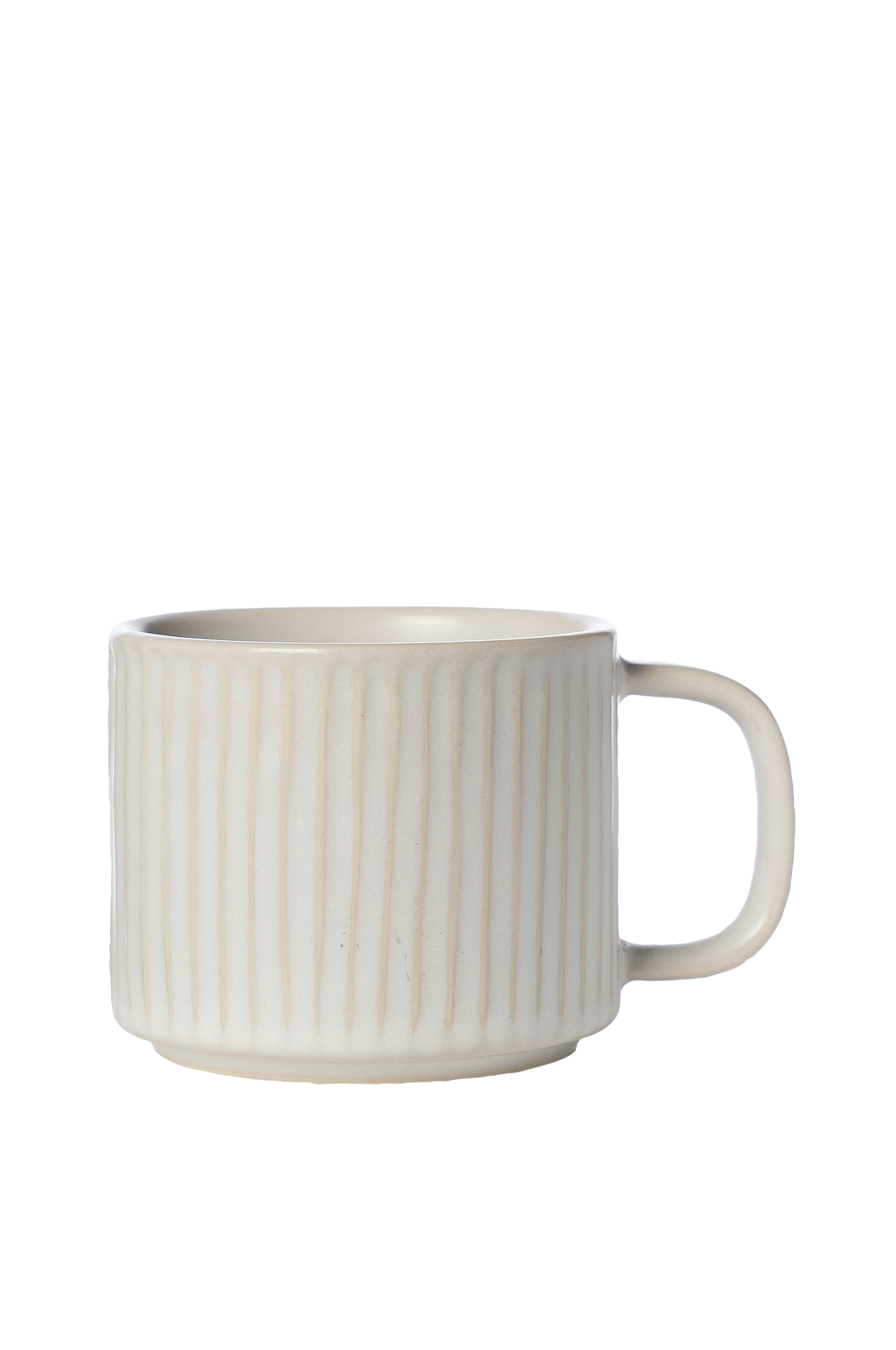 Ernst koppen med räfflad struktur i naturvitt är gjord för stunder av eftertanke. Den mjuka färgen och den taktila ytan ger en varm känsla i handen, en kopp som förhöjer varje paus och smälter in i hemmets lugna hörn. Perfekt för att njuta av dagens små, lugna stunder.