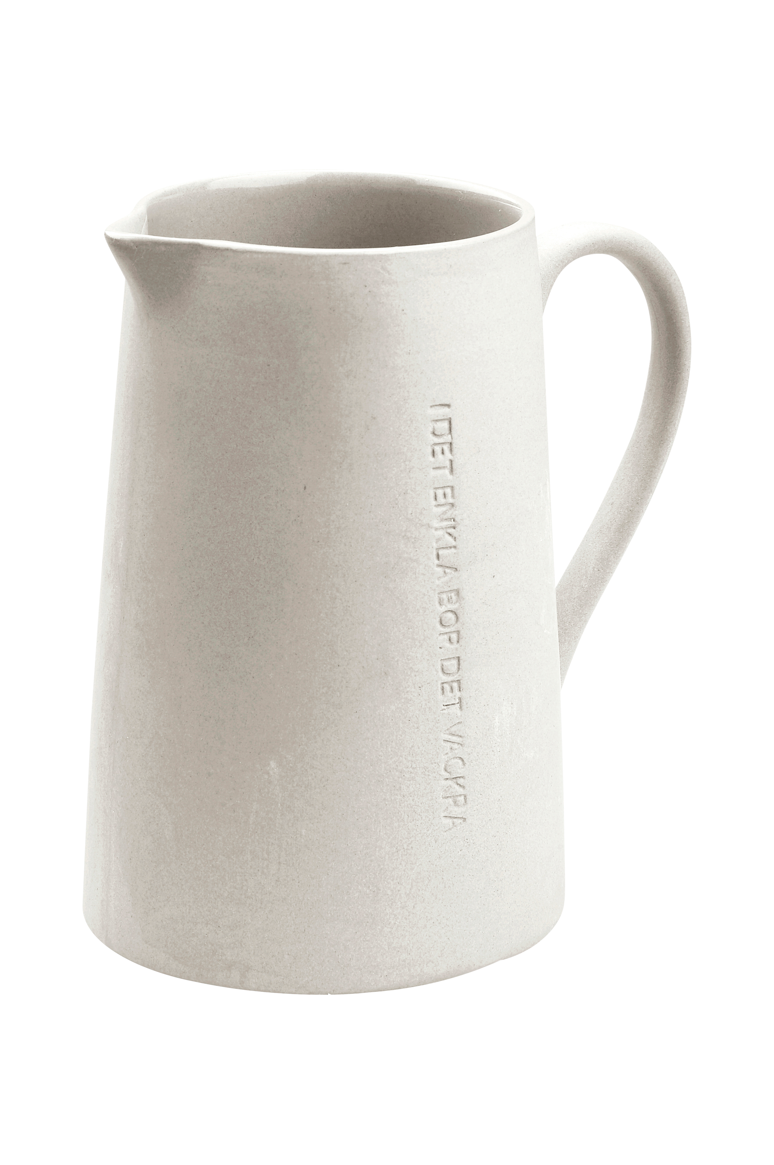 ERNST populära servis i stengods har vackra dova färger och matt utsida som gör att de passar i varje hem. Denna mjölkkanna passar fint ihop med temuggar och kaffekoppar i samma serie. Storlek: diameter 9,5 cm, h 14 cm, med citatet " I DET ENKLA BOR DET VACKRA".