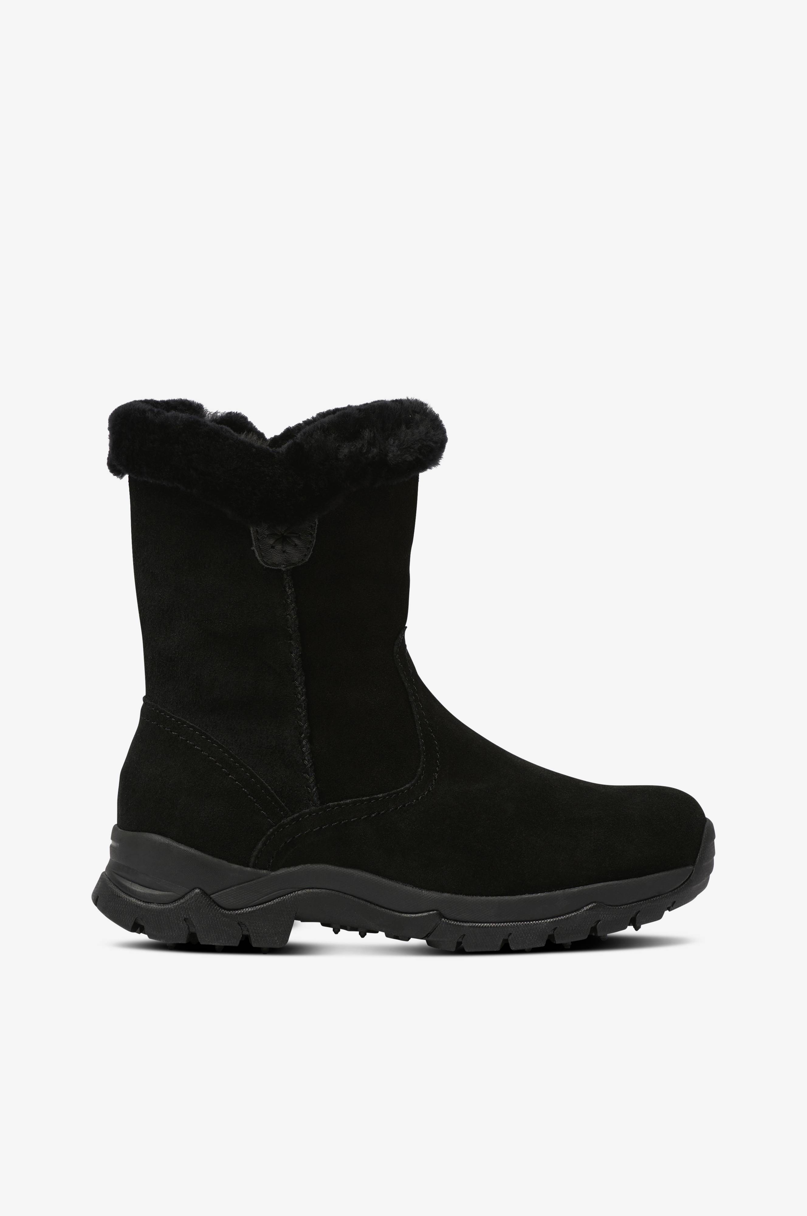Vinterboots från Eskimo i mjuk mocka med värmande fuskpälsfoder som är synligt upptill på skaftet. Dragkedja på insidan av skaftet för smidig påtagning. Greppsäker yttersula med 15 dubbar i volfram (hårdmetall) och 19 dubbar i gummi som underlättar när det är halt och isigt ute. Väl uppbyggd mellansula som ger skönt stöd även under längre promenader. Skafthöjd ca 16 cm.