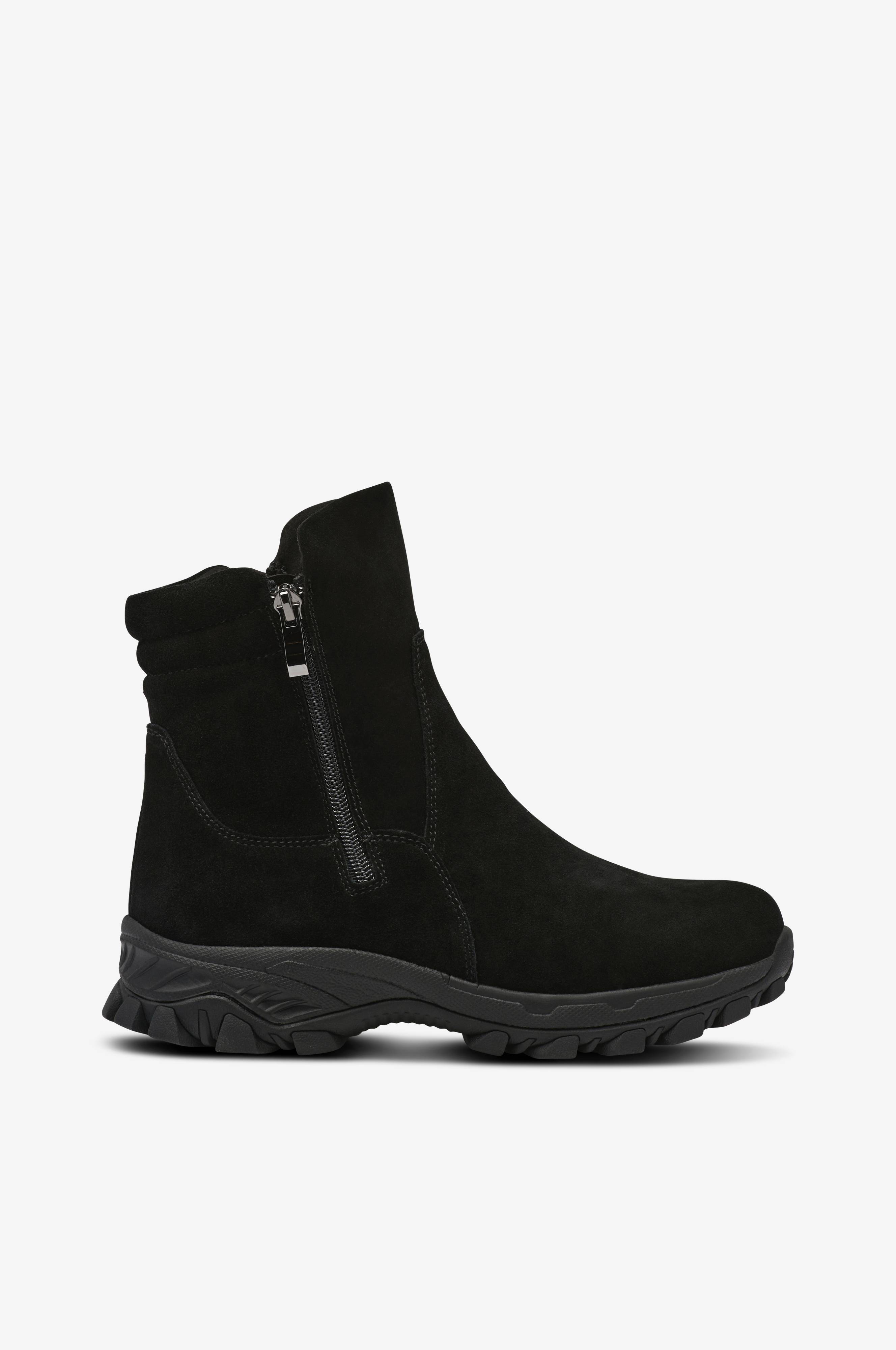 • Varmfodrade vinterboots med utfällbara broddar under sulorna• Ovandel i mocka• Varmt foder i fårpäls• Dragkedja på skaftets båda sidor• Yttersula i gummi med utfällbara broddar i metall• Skafthöjd: 12 cm i stl 37