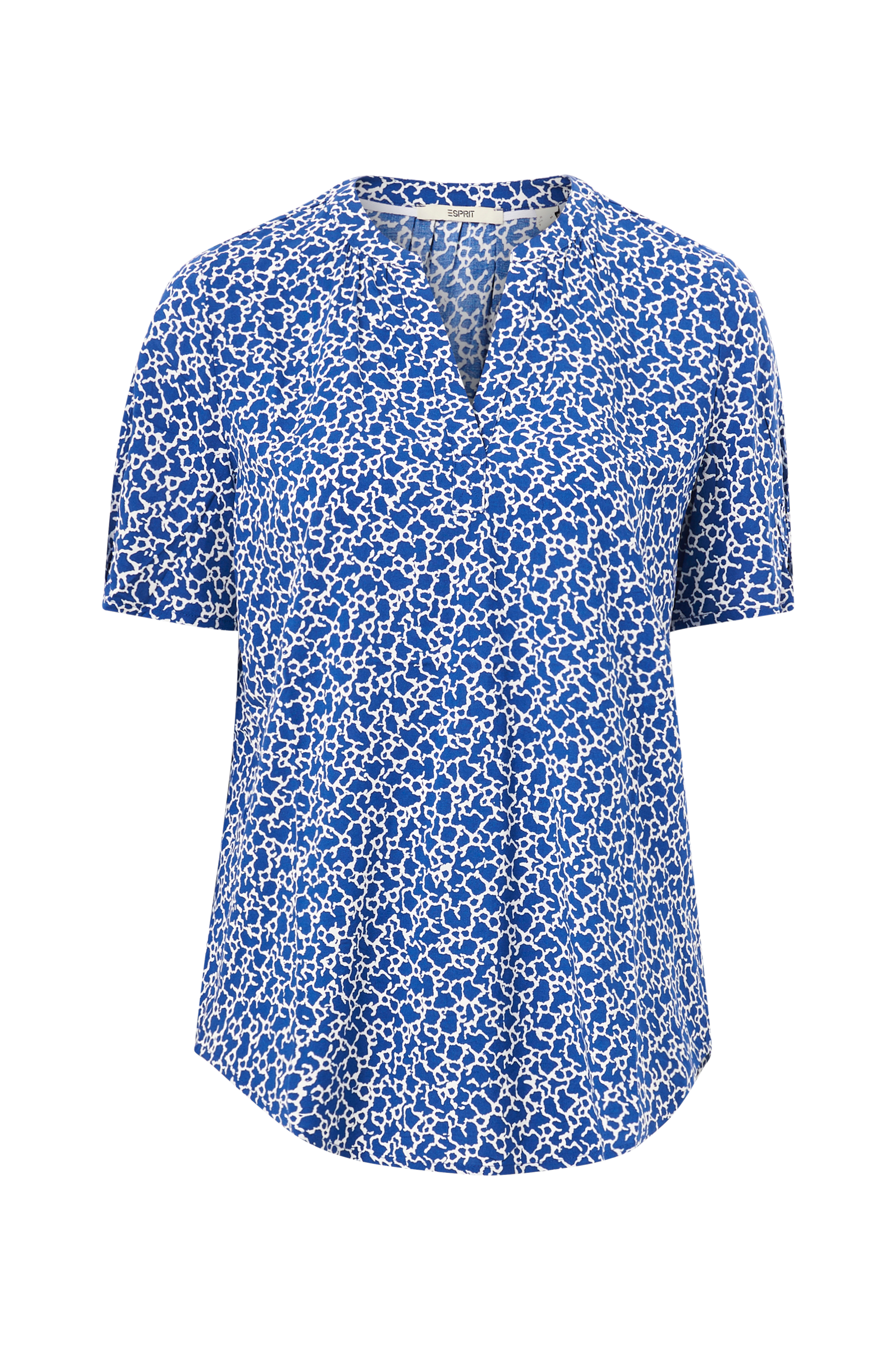 • Blus i viskos• V-ringning• Korta ärmar• Rundad nederkant