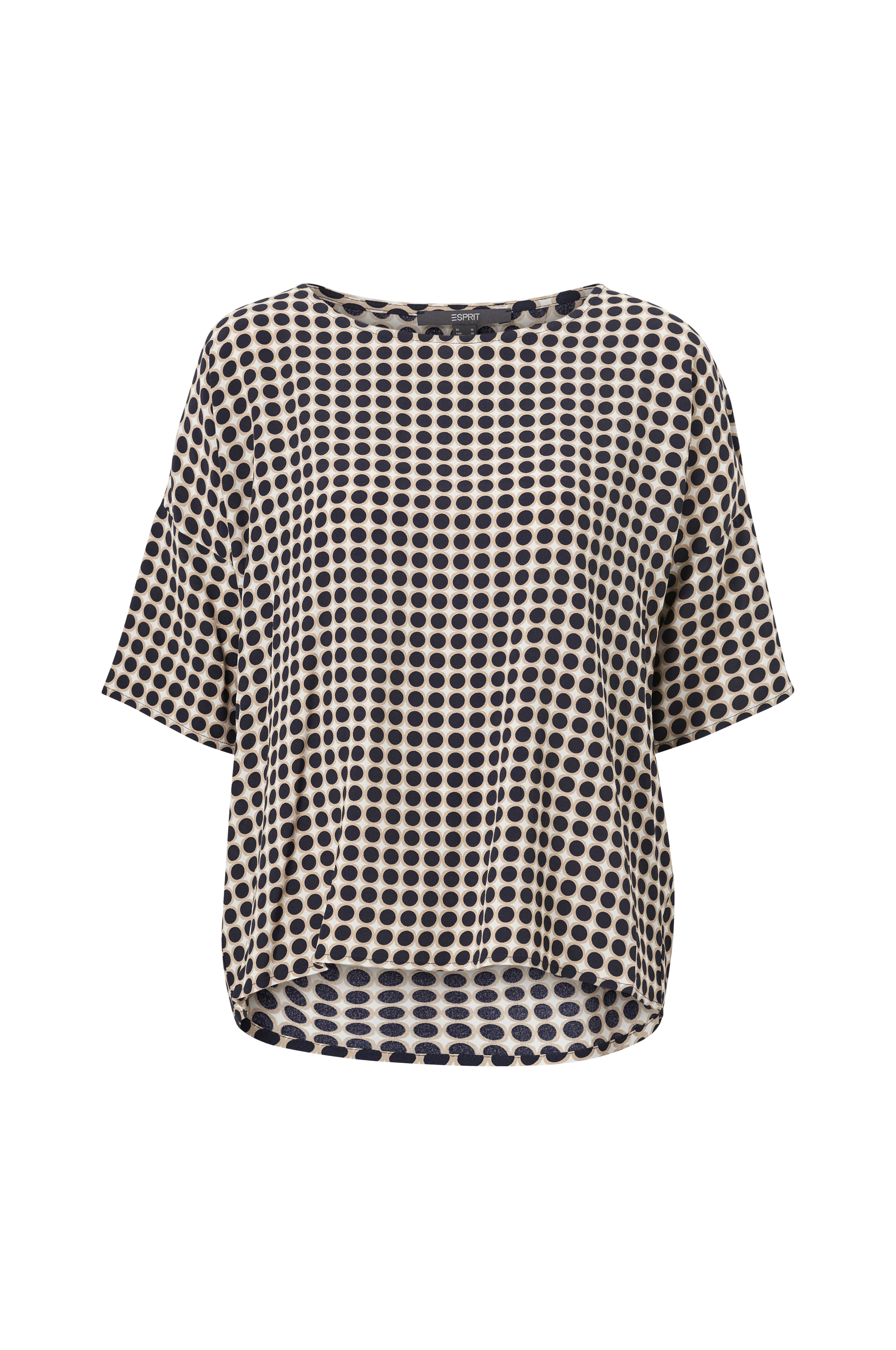 Blus i vid modell med ledig passform. Rund hals och korta ärmar med nedhasade axlar. Gjord i vävd viskos med prickmönster.