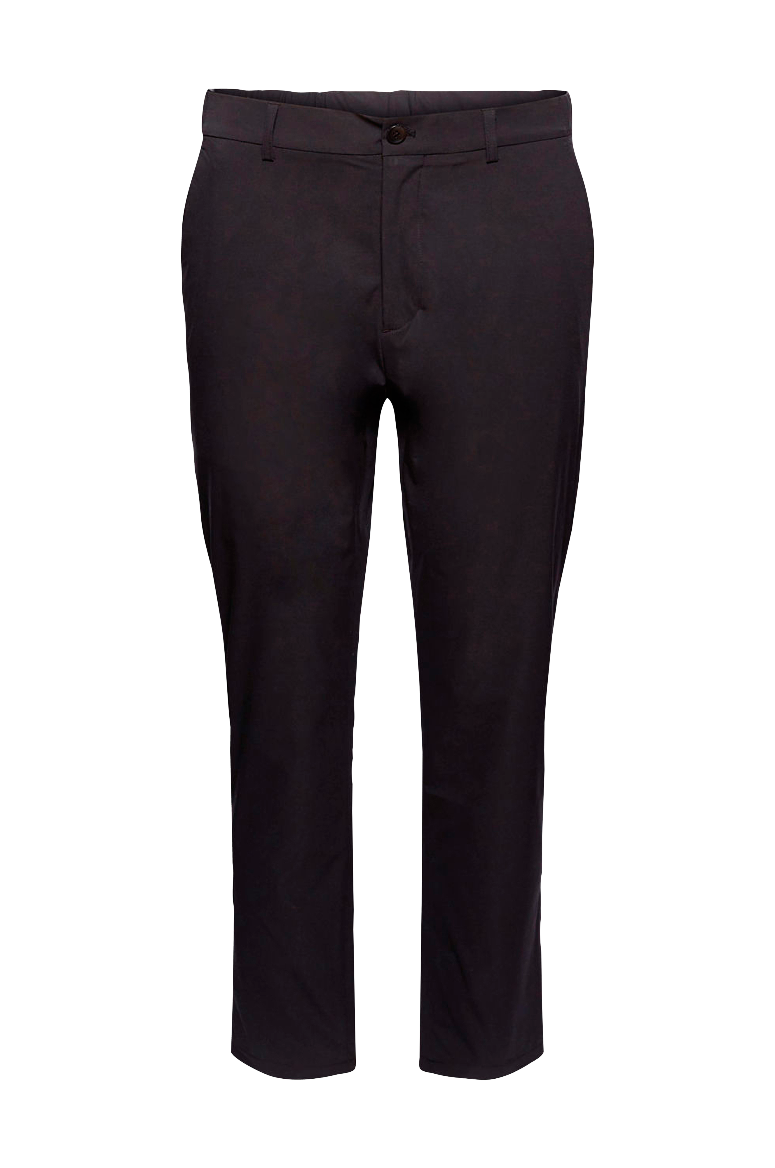 Kostymbyxor i slätt vävt tyg med funktion: lätt, tvättbart och andningsaktivt. Kortare modell med avsmalnande ben. Mycket bekväm, eftersom den är töjbar i längd- och tvärriktning (bi-stretch). Resårlinning med hällor, knapp och dold dragkedja. Insticksfickor i sidorna och dragkedjeficka på ena sidan bak. Beninnerlängd ca 73 cm i stl 50.