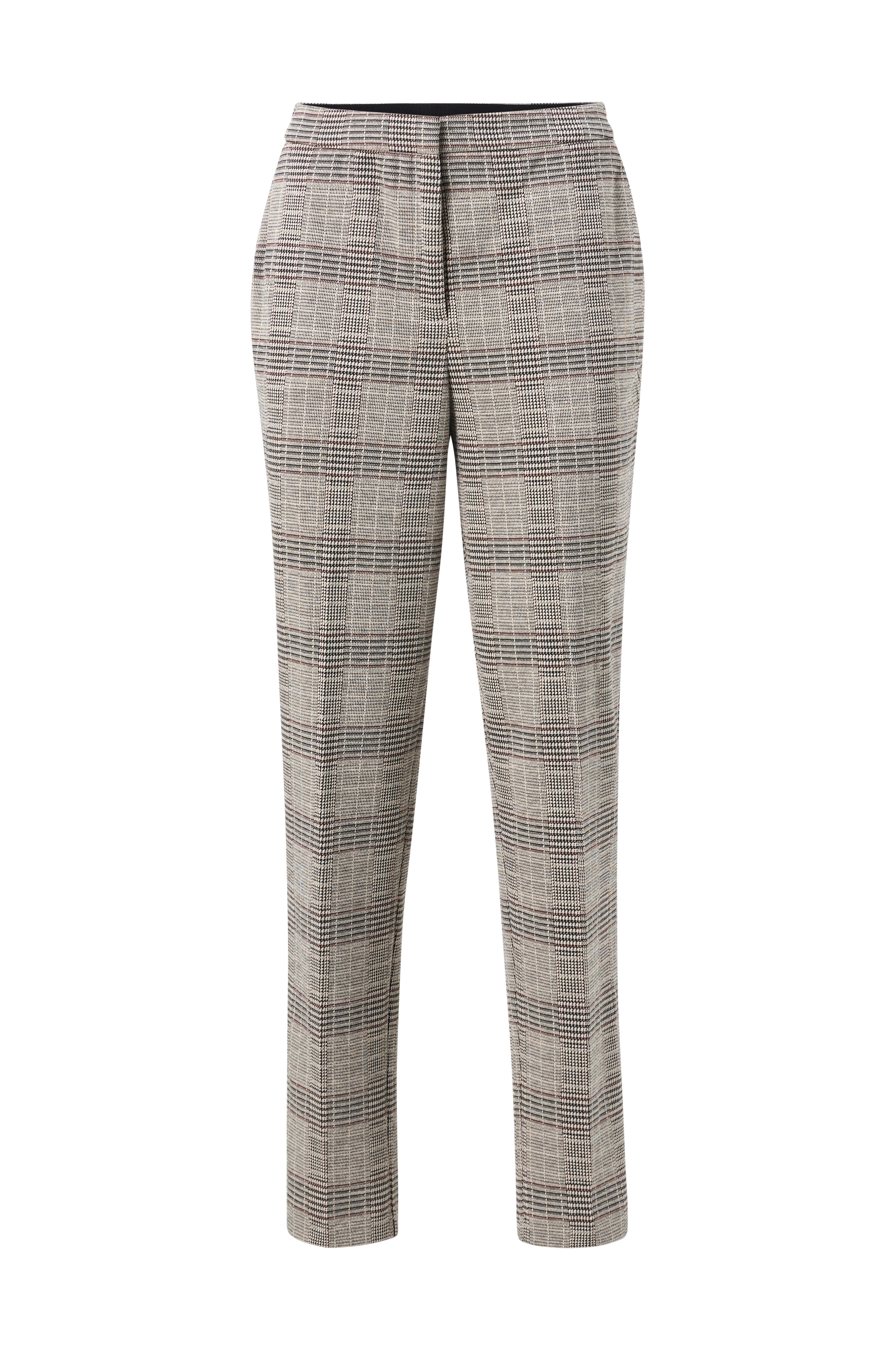 • Vävt tyg med en mjuk känsla• Rutigt mönster• Avslappnad passform med avsmalnande ben• Resår bak i midjan• Dold hysk- och hakestängning• Dragkedjegylf• Två fickor fram• Fuskfickor bak