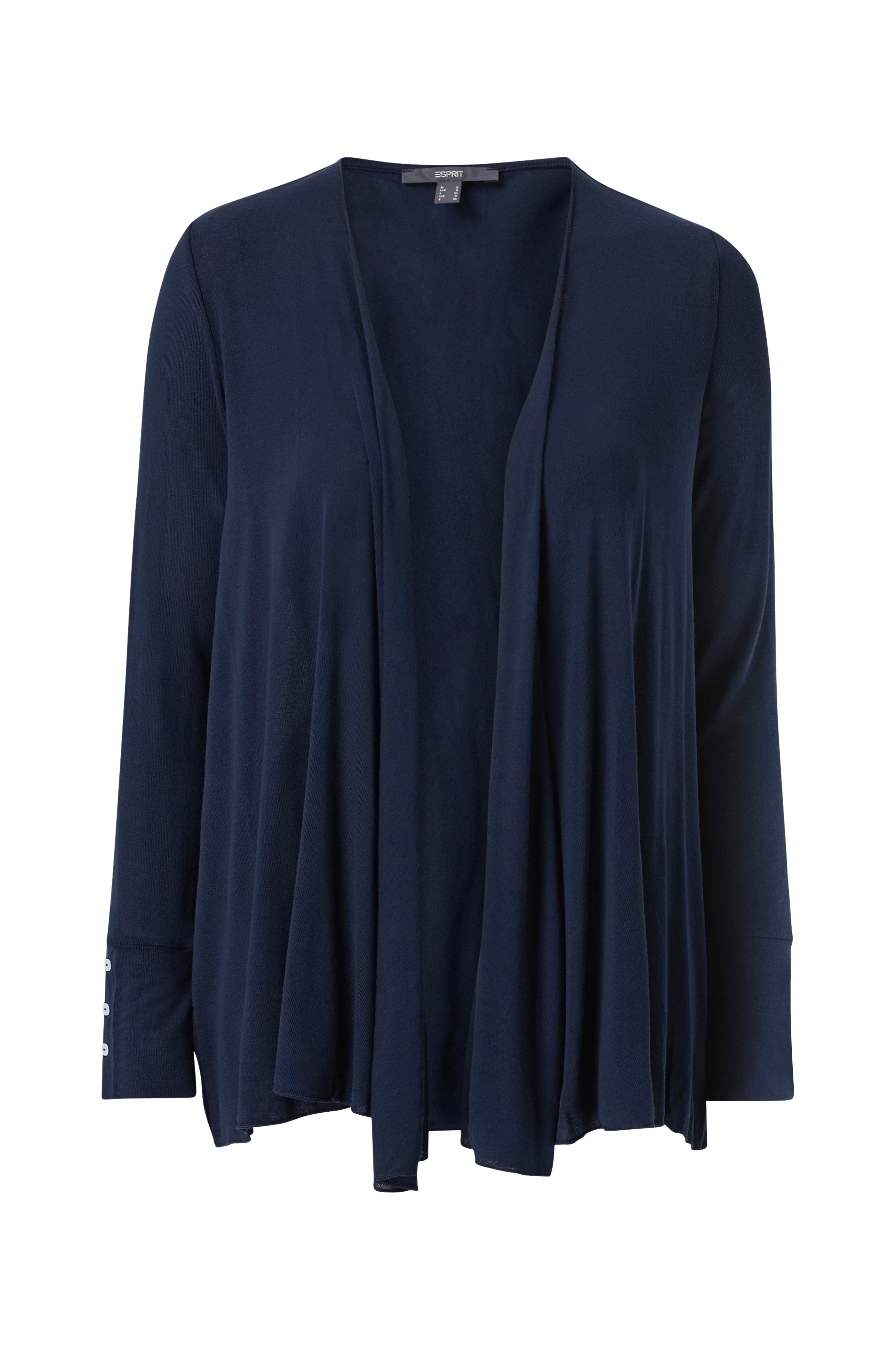 Cardigan från Esprit i tunn viskosjersey. Öppen front och asymmetrisk nederkant fram som ger en fin, böljande siluett. Långa ärmar med dekorknappar i ärmsluten.