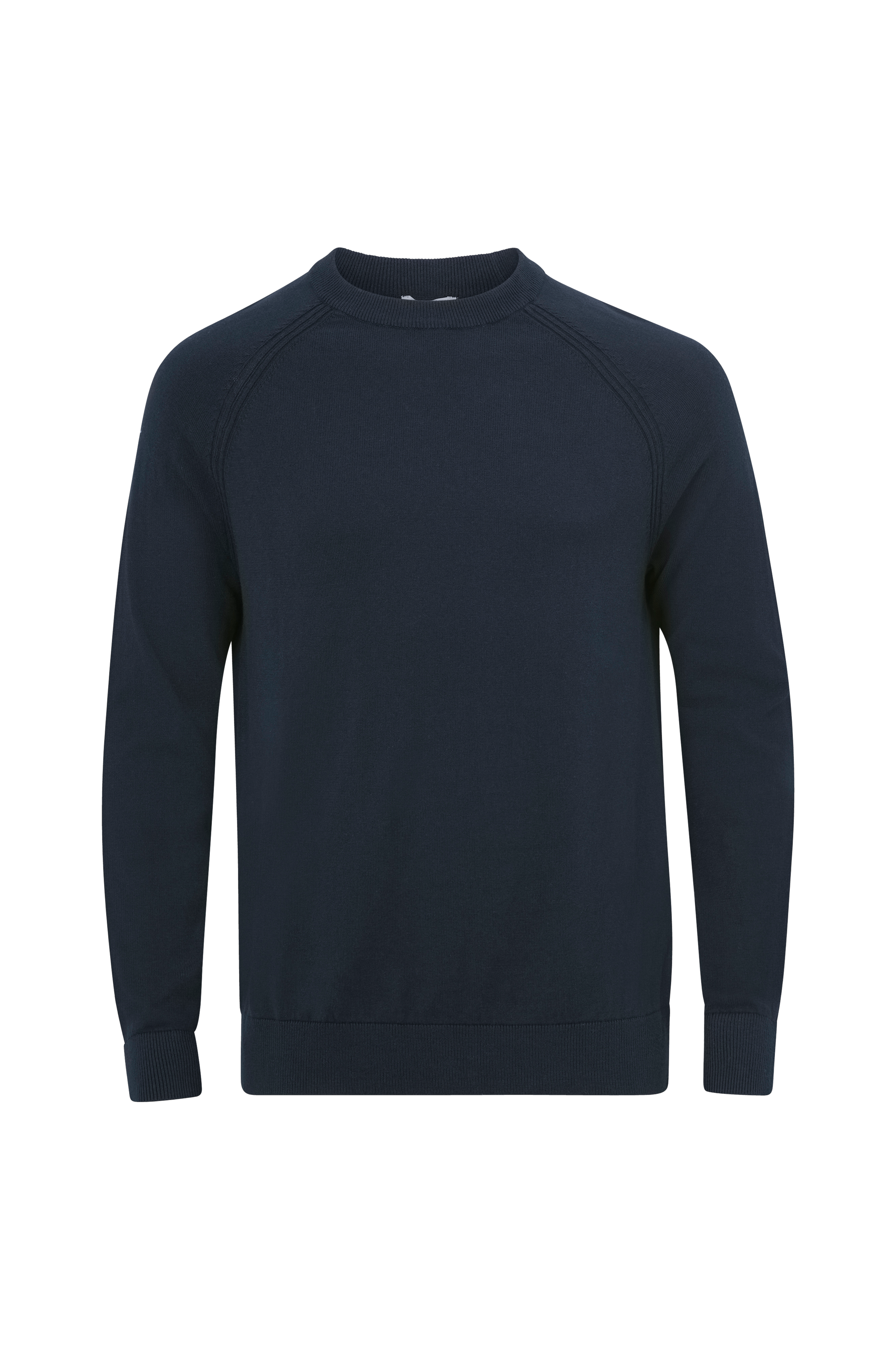 Finstickad tröja med rund, ribbad halsringning. Raglanärmar. Ribbmuddar i ärmsluten och nedtill.