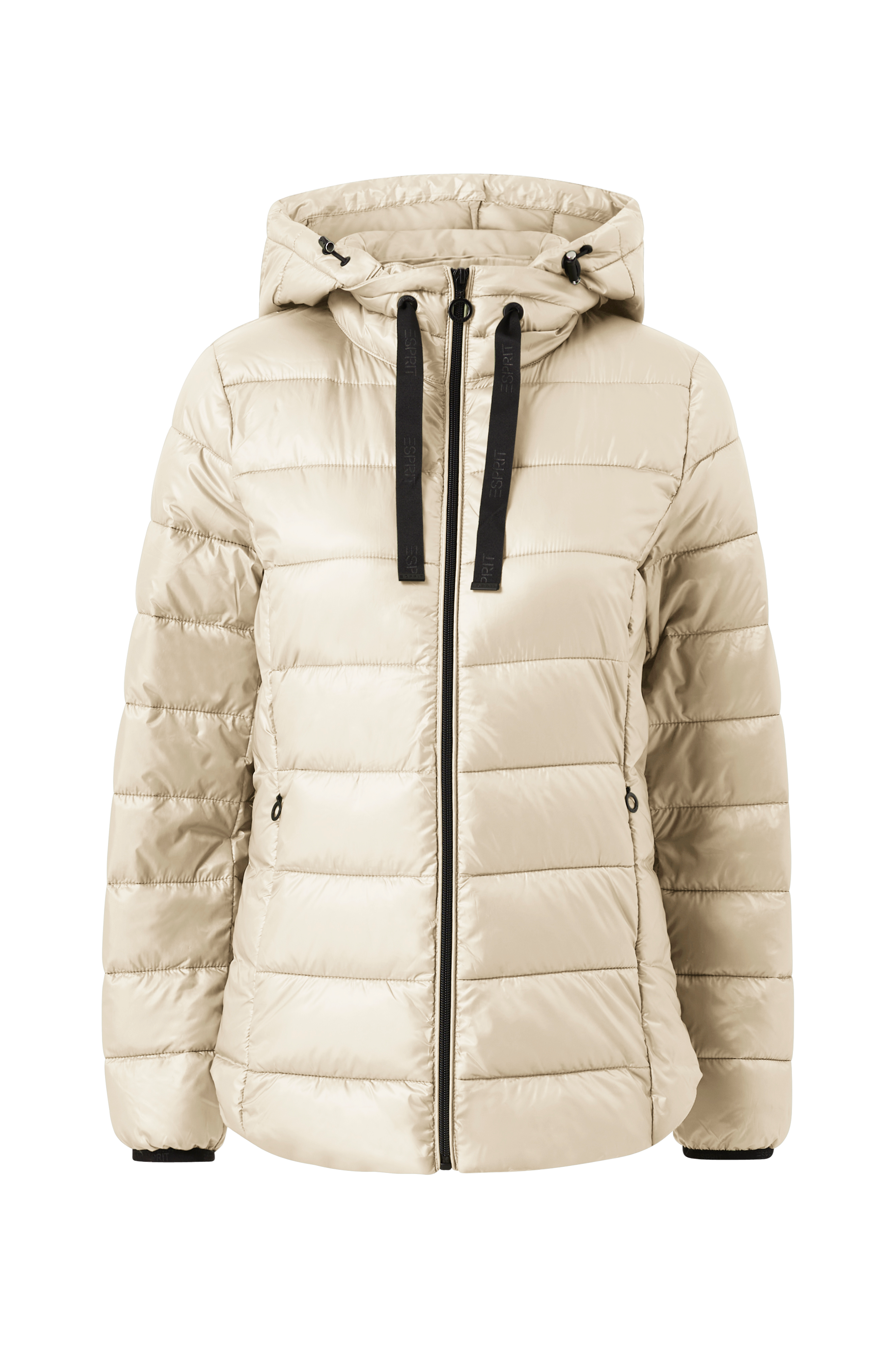 • Quiltad, vadderad jacka• Vattenavvisande yttertyg• Avtagbar huva med dragsko och en dragkedja• Två dragkedjefickor• Dragkedjor nedtill i sidorna• Tunn resår i ärmsluten• Längd: 69 cm i storlek S