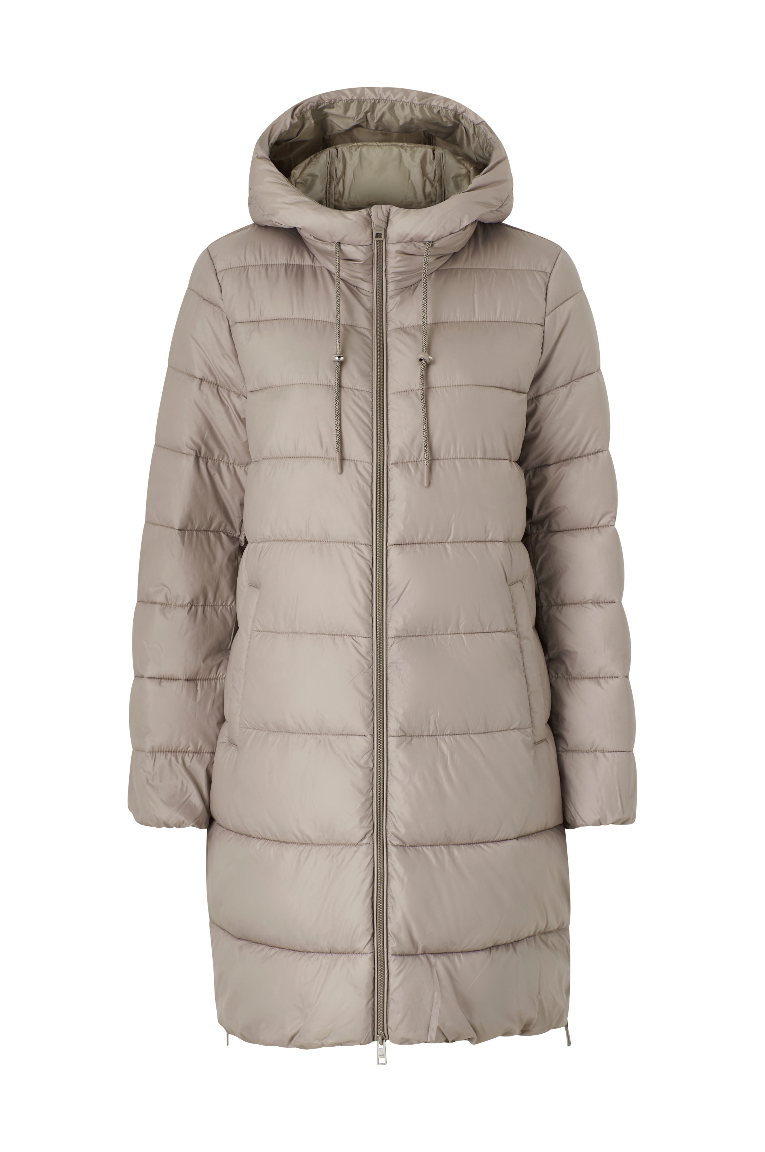 • Quiltad, vadderad jacka• Lättviktsmodell• Vattenavvisande yta• Fast huva med dragsko• Tvåvägsdragkedja• En innerficka• Sidfickor med tryckknappsstängning• Dragkedjor nedtill i sidorna• Längd: 95 cm i storlek S