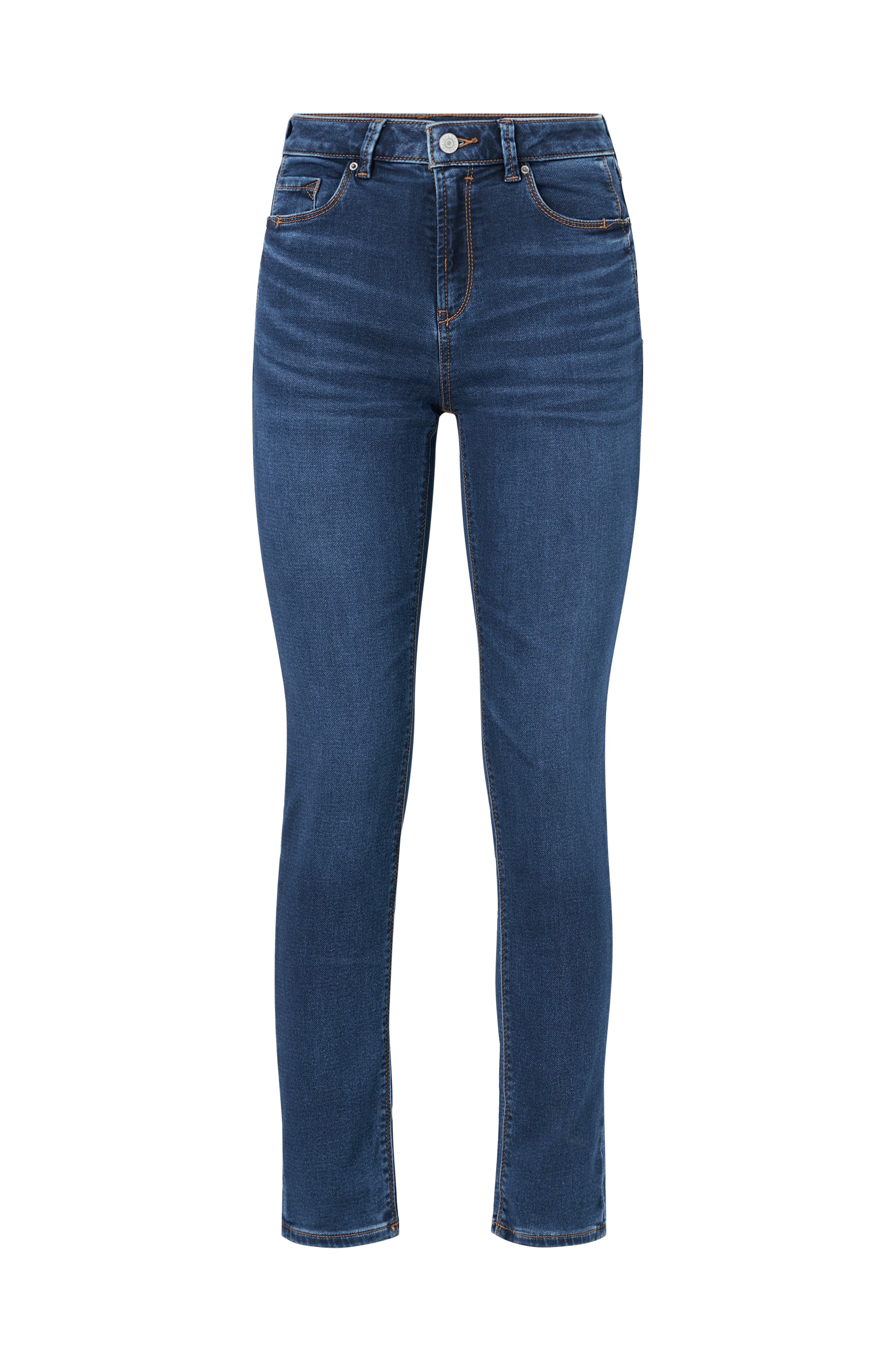 Smal modell i följsam och mjuk denim med lätt avsmalnande benslut. Normalhög midja med dragkedja och fem klassiska jeansfickor.