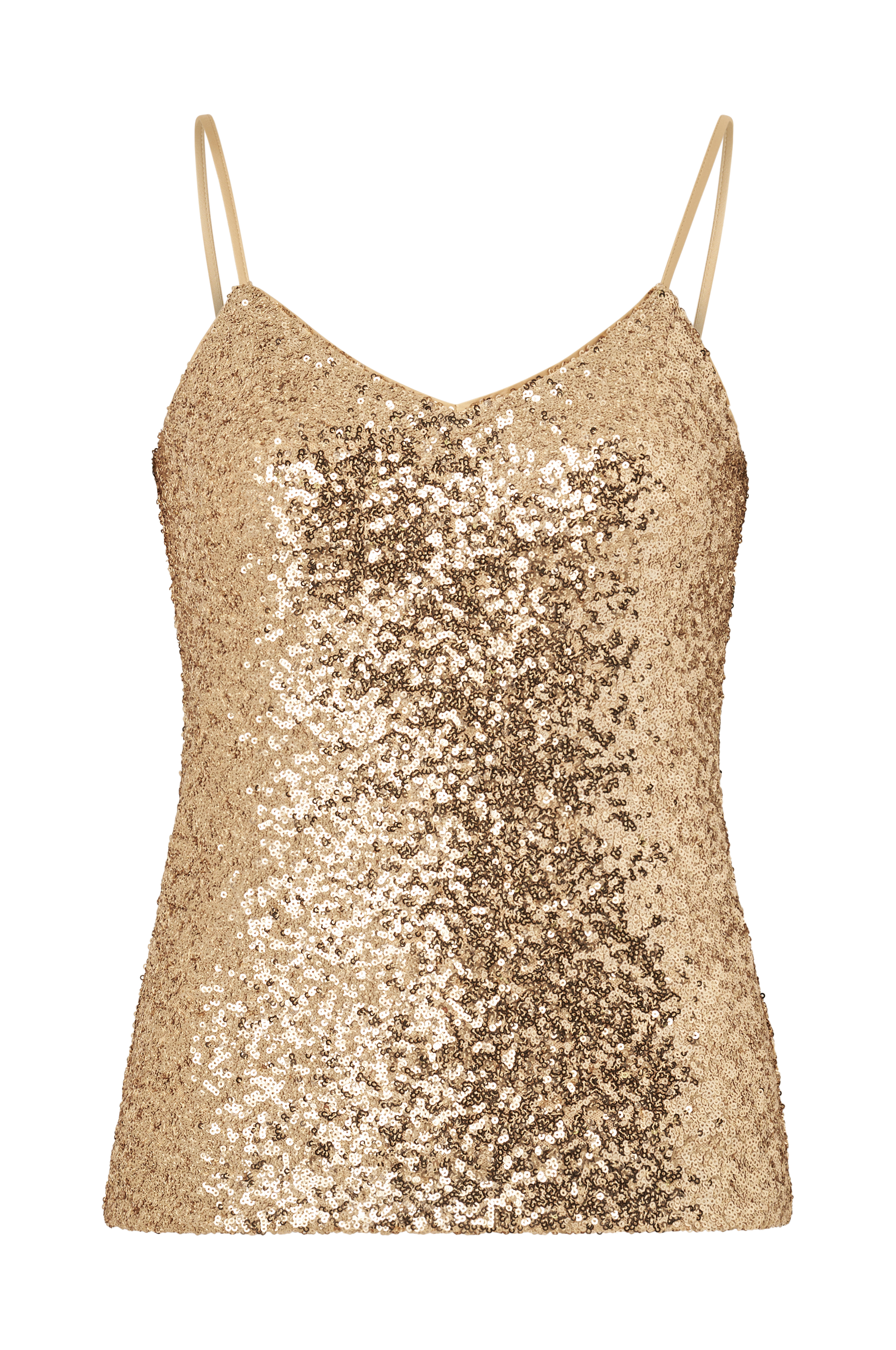 • Fodrad, ärmlös paljettopp med smal passform• V-ringning• Justerbara axelband
