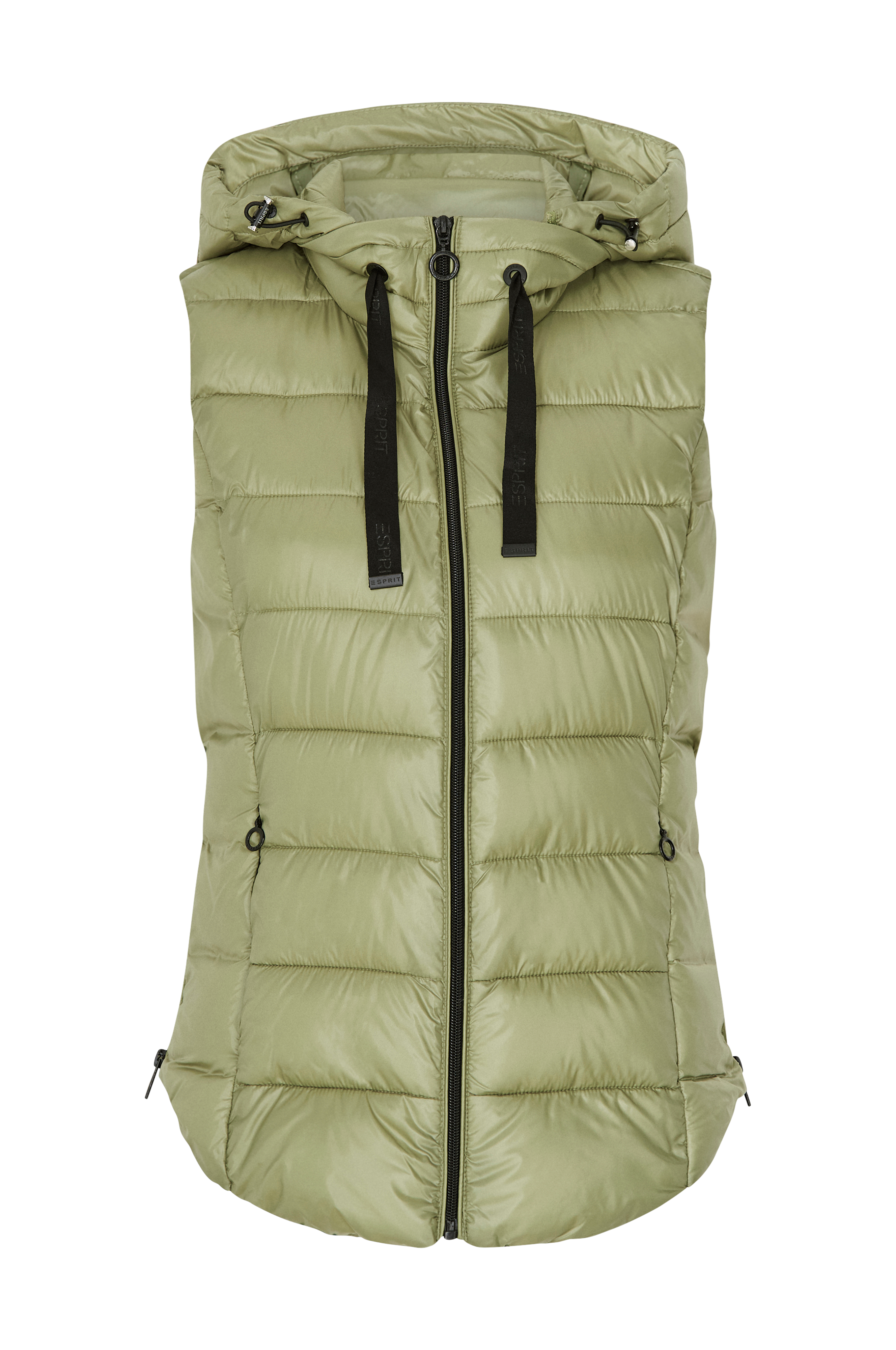 En superlätt, quiltad och varmt vadderad väst i återvunnet material. Avtagbar och justerbar huva med dragsko, hög krage och dragkedja. Två fickor med dragkedja. Västen kan öppnas upp med dragkedjor i sidorna.