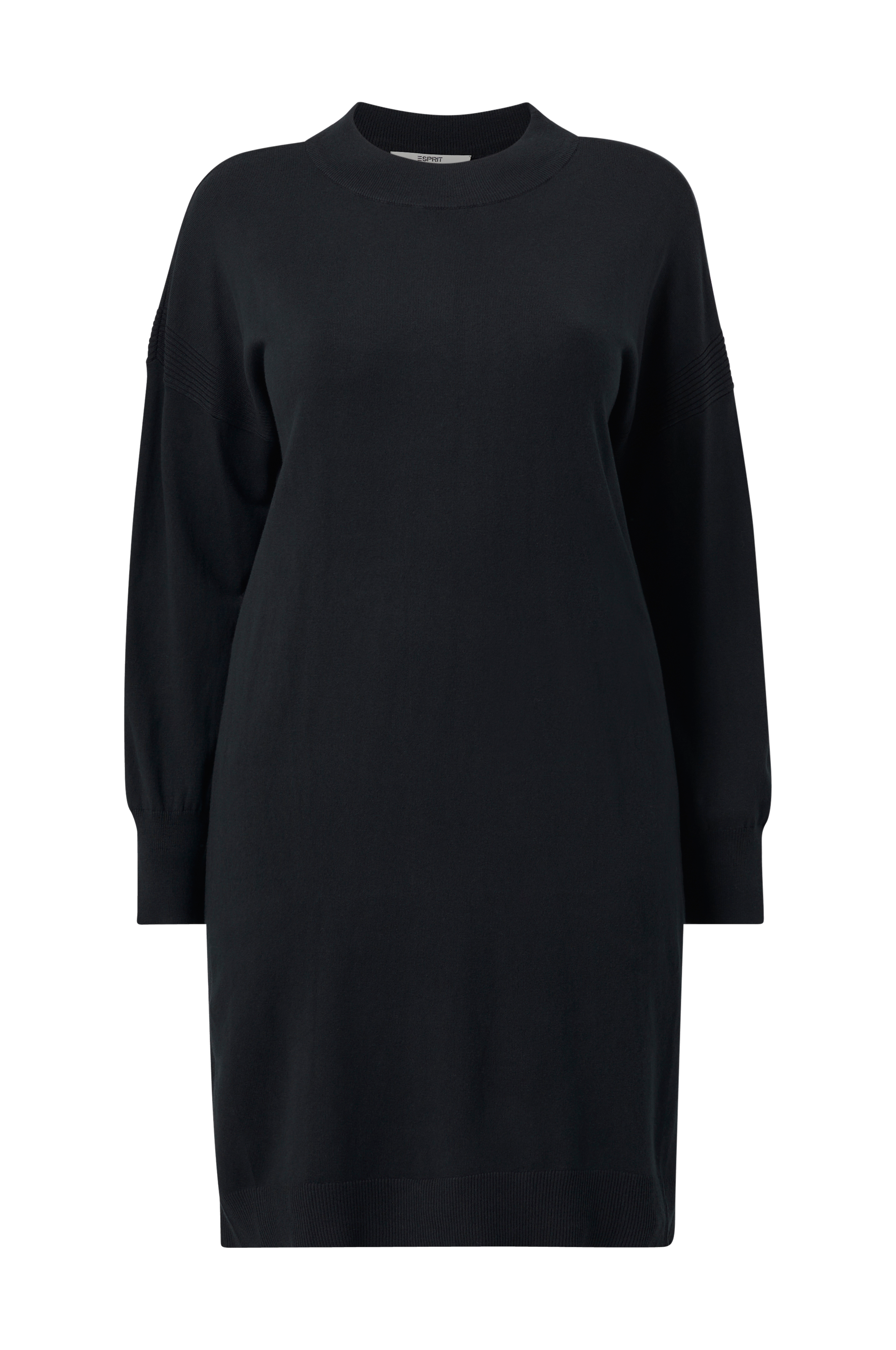 • Stickad klänning• Rund, ribbad halsringning• Ribbstickade detaljer i sidorna, på ärmarna och på ryggen• Ribbmuddar i ärmsluten• Plusstorlekar• Längd: 110 cm i storlek 44