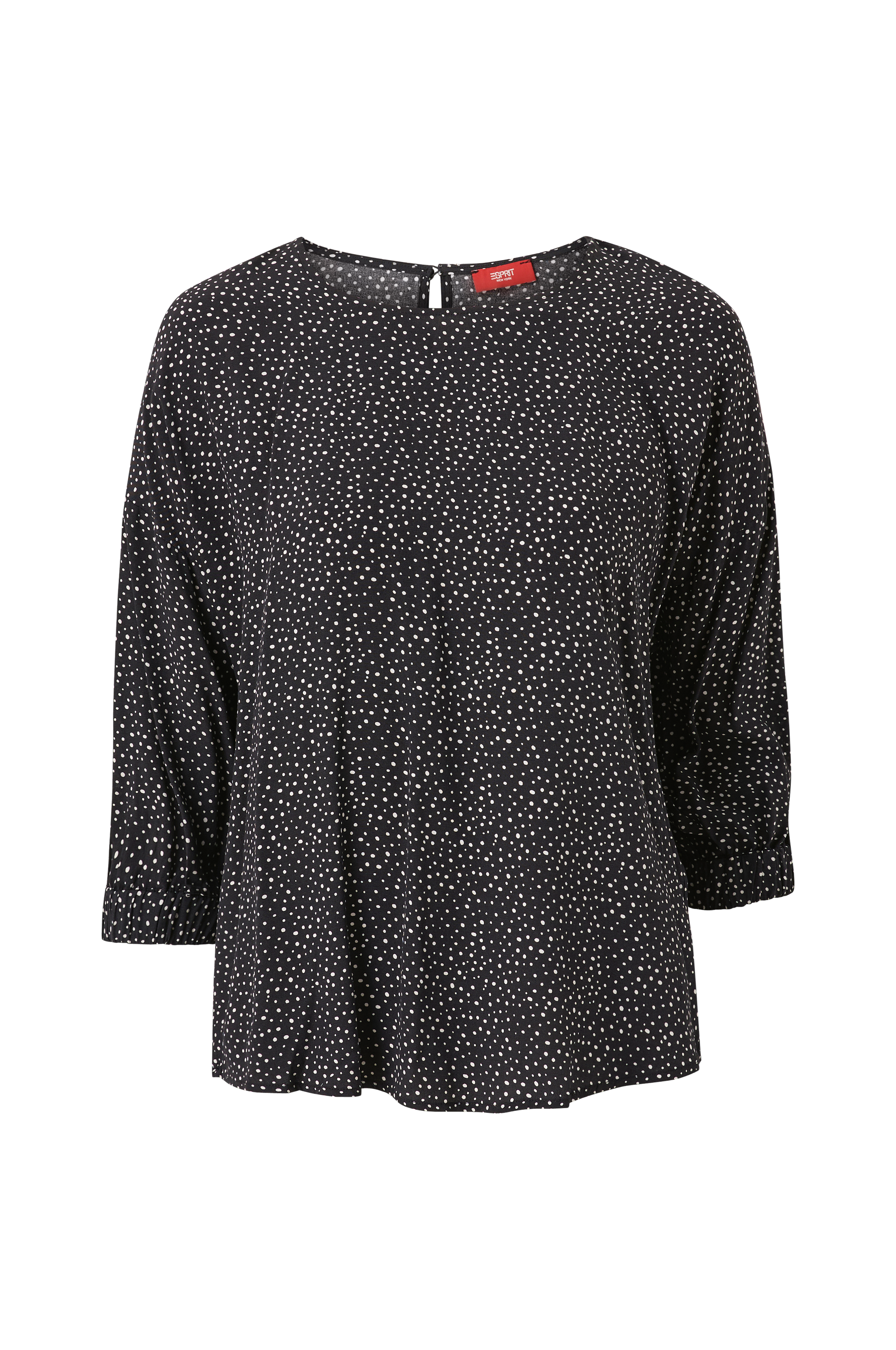 • Rak modell• Rund hals med knapp i nacken• Nerhasad axel• 3/4-lång ärm med elastiskt ärmslut