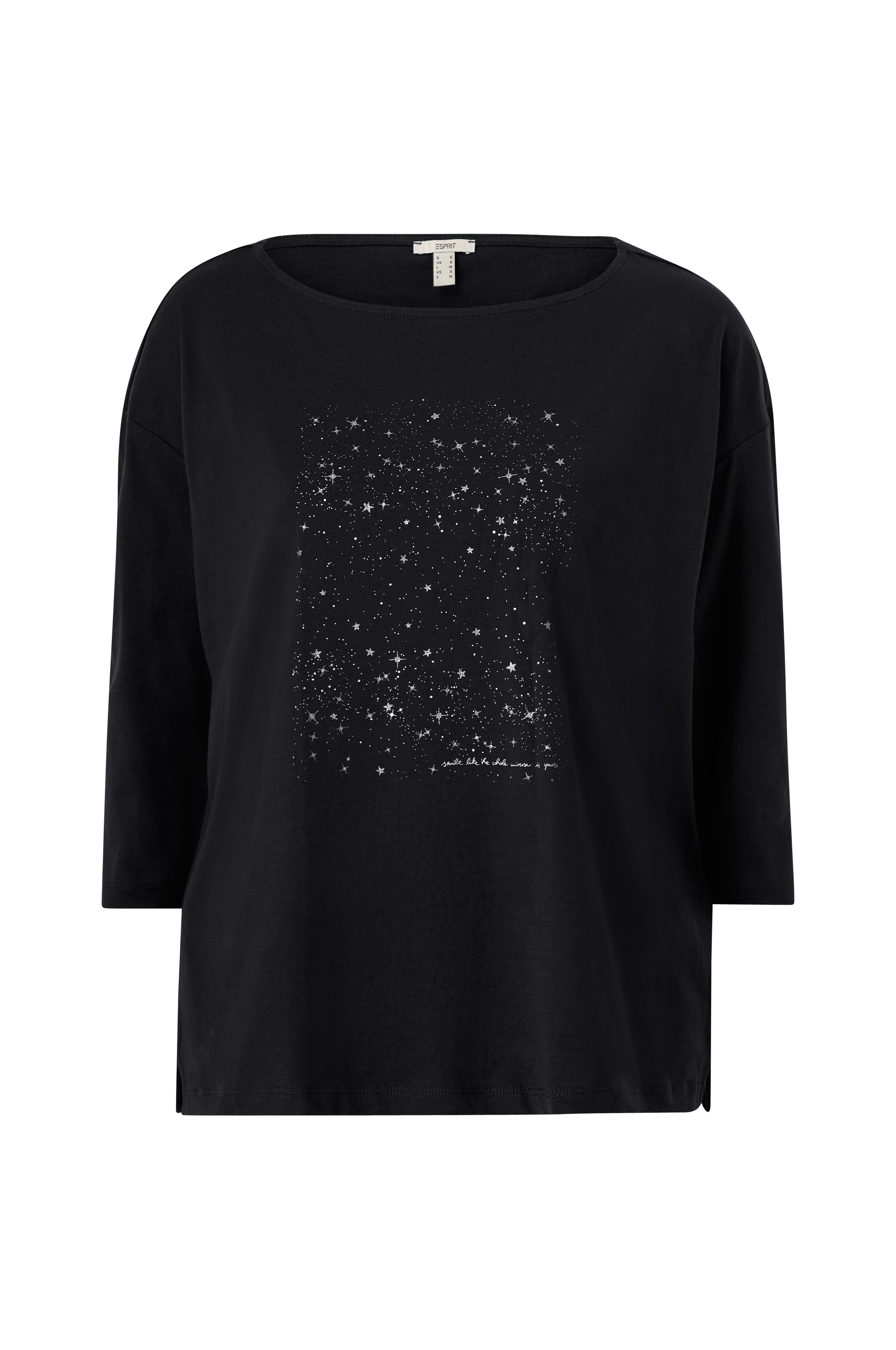 • Mjuk, stretchig trikå • Glittrigt tryck fram • Rund hals • Nerhasade axlar • 3/4-långa ärmar • Produkten innehåller ekologisk bomull som är odlad utan kemiska bekämpningsmedel, konstgödsel och genmodifierade grödor (GMO). Det innebär en mer hälsosam arbetsmiljö för bönder och bättre jordmån.