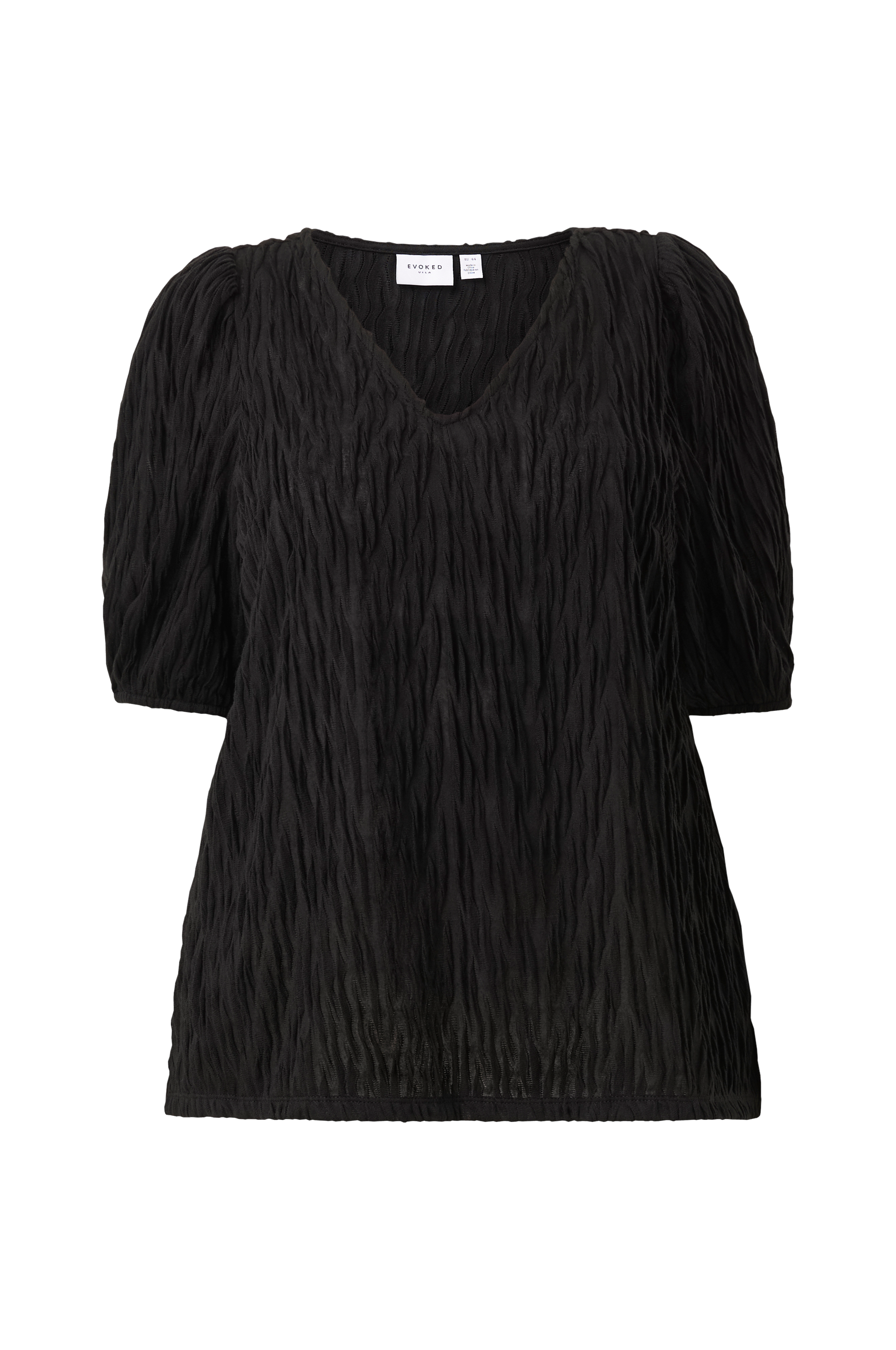 • V-ringning• Halvlånga puffärmar• Strukturmönstrat material• Plusstorlekar